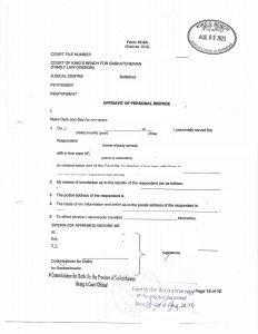 这个是在2024年8月份完成的一份加拿大海牙认证公证书,内容是萨省巴特尔福德市的离婚判决送达确认书。当事人在中国,扫描发来了离婚判决书、判决书送达确认书,还有离婚证,远程视频验证文件的真实性后进行公证翻译和海牙认证。然后快递回中国,用于国内分割夫妻财产等业务。