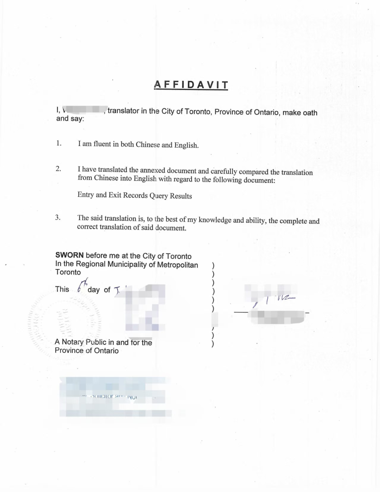 在加拿大取得此记录后,李先生通过注册翻译机构进行了英文翻译,并在本地找公证员完成了宣誓公证,确保翻译文本被移民局正式接受。