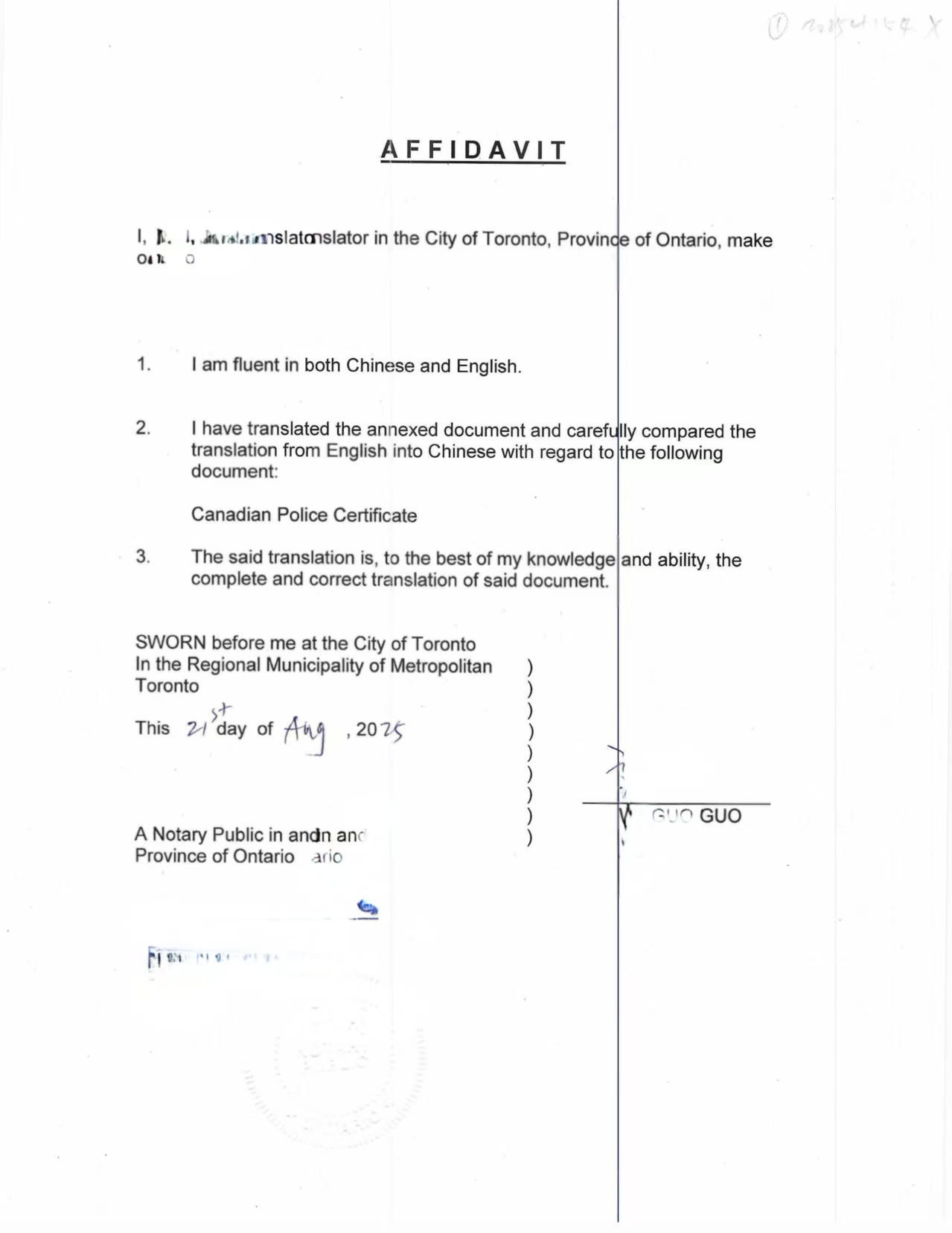 我们首先安排安省持牌律师对无犯罪证明进行真实性确认,确保签发机构及印章有效。律师公证完成后,文件正式具备提交安省政府认证的资格。