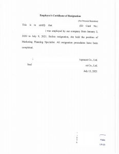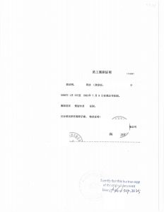 在加拿大阿尔伯塔省生活的张女士是一位华人移民,为了递交移民局关于其职业经历的相关文件,需对一份由中国郑州市某知名房地产开发公司出具的离职证明进行翻译及公证认证。这份文件原文为中文,用于证明其于2020年1月2日至2021年7月9日期间在该公司任职“策划专员”,并已正式离职。