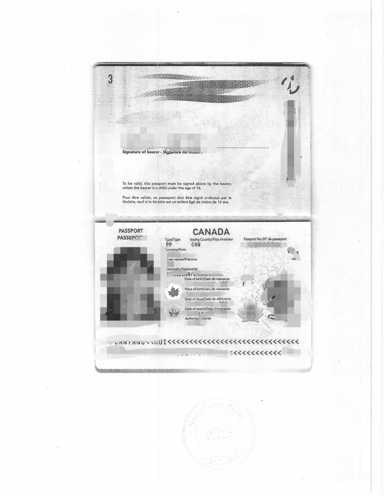 现加拿大护照(编号:P8289****,姓名:LIN HUI);