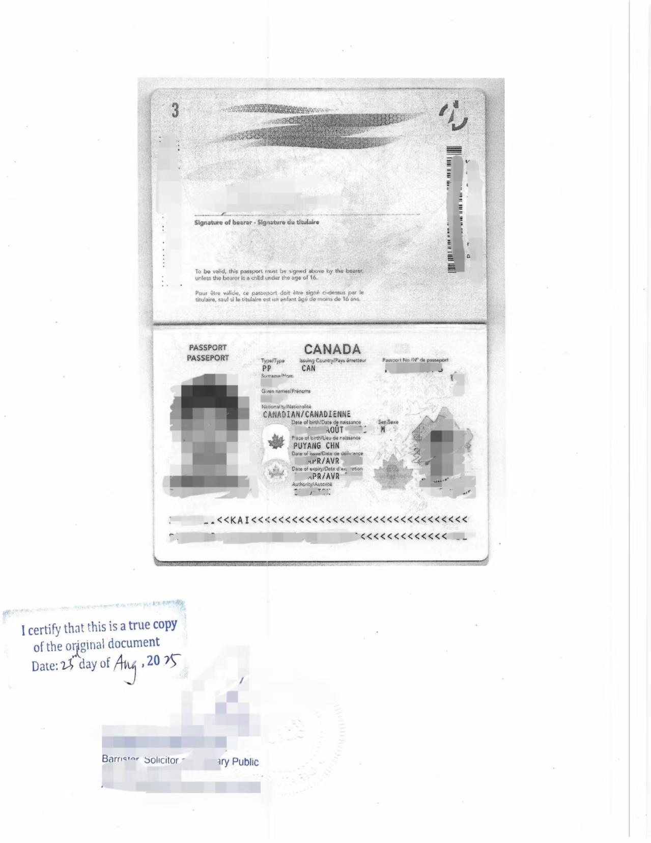 安省注册律师审核陈先生的身份信息及声明书,出具律师公证书,确认文件和签名的真实性。