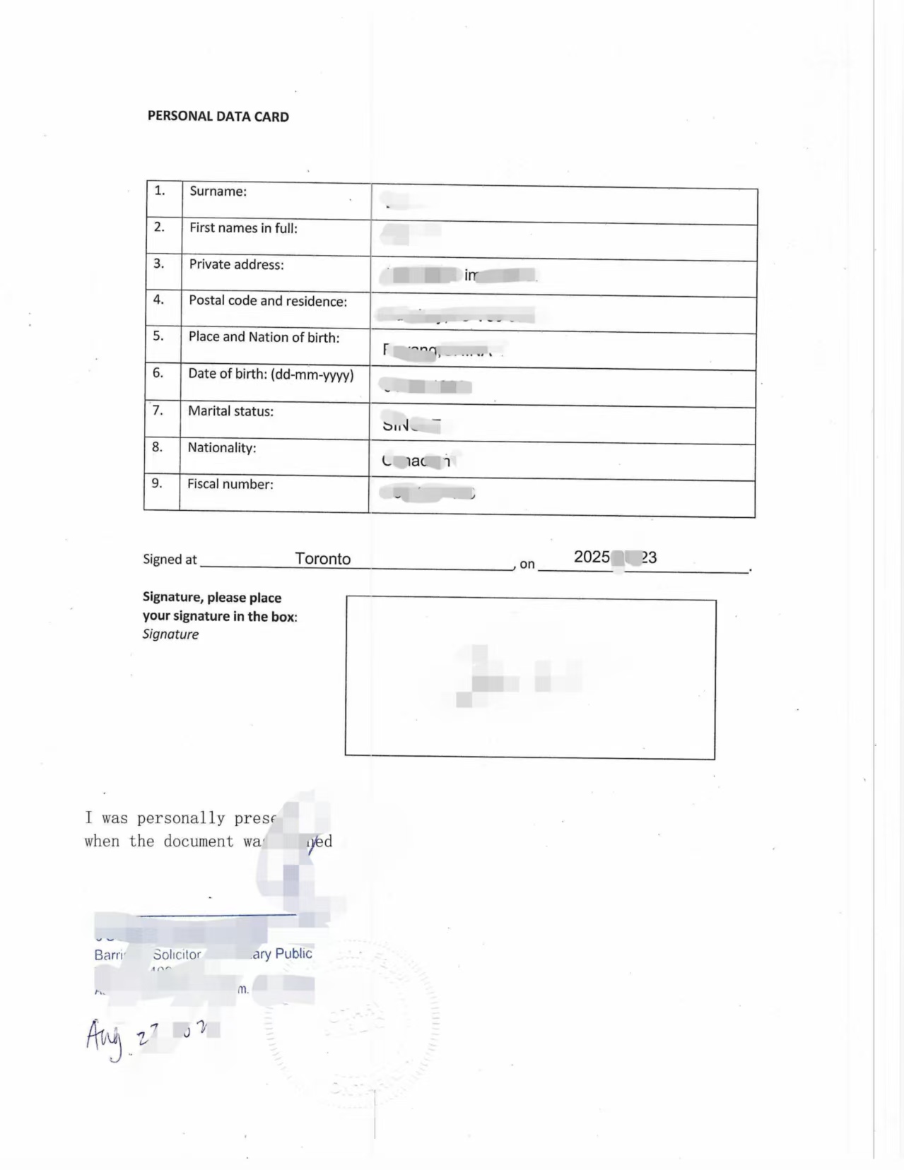 在跨国商务活动中,个人信息声明往往是办理境外公司注册和法律事务的基础性文件。近日,居住在加拿大BC省本那比的陈先生(化名),因计划在荷兰注册一家贸易公司,需要提交一份个人信息声明书并办理海牙认证附加证明,以确保该文件在荷兰具有法律效力。