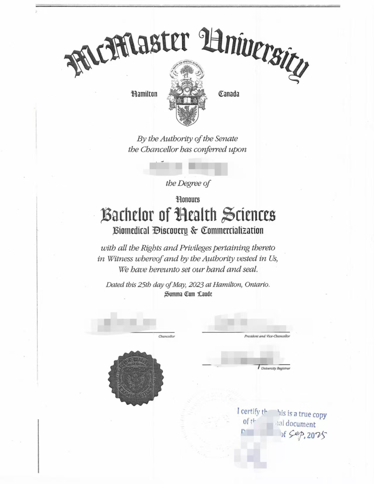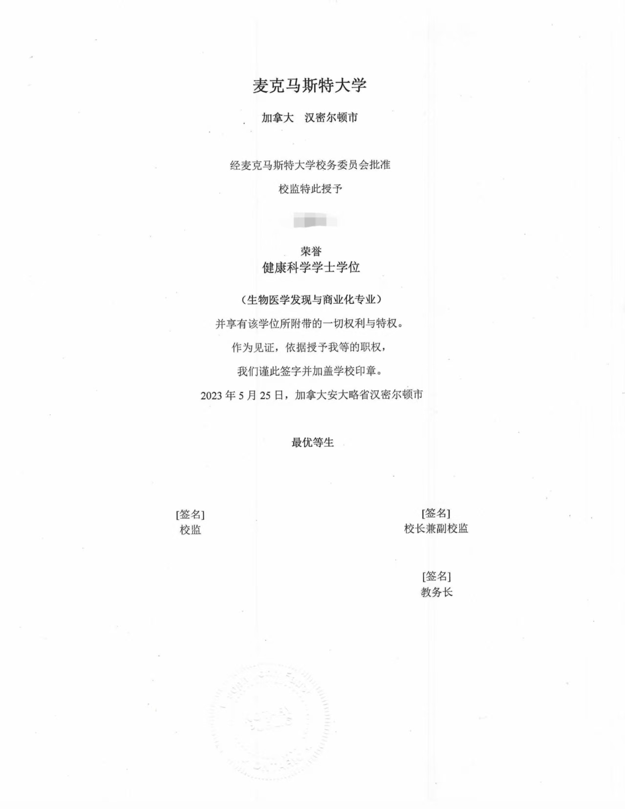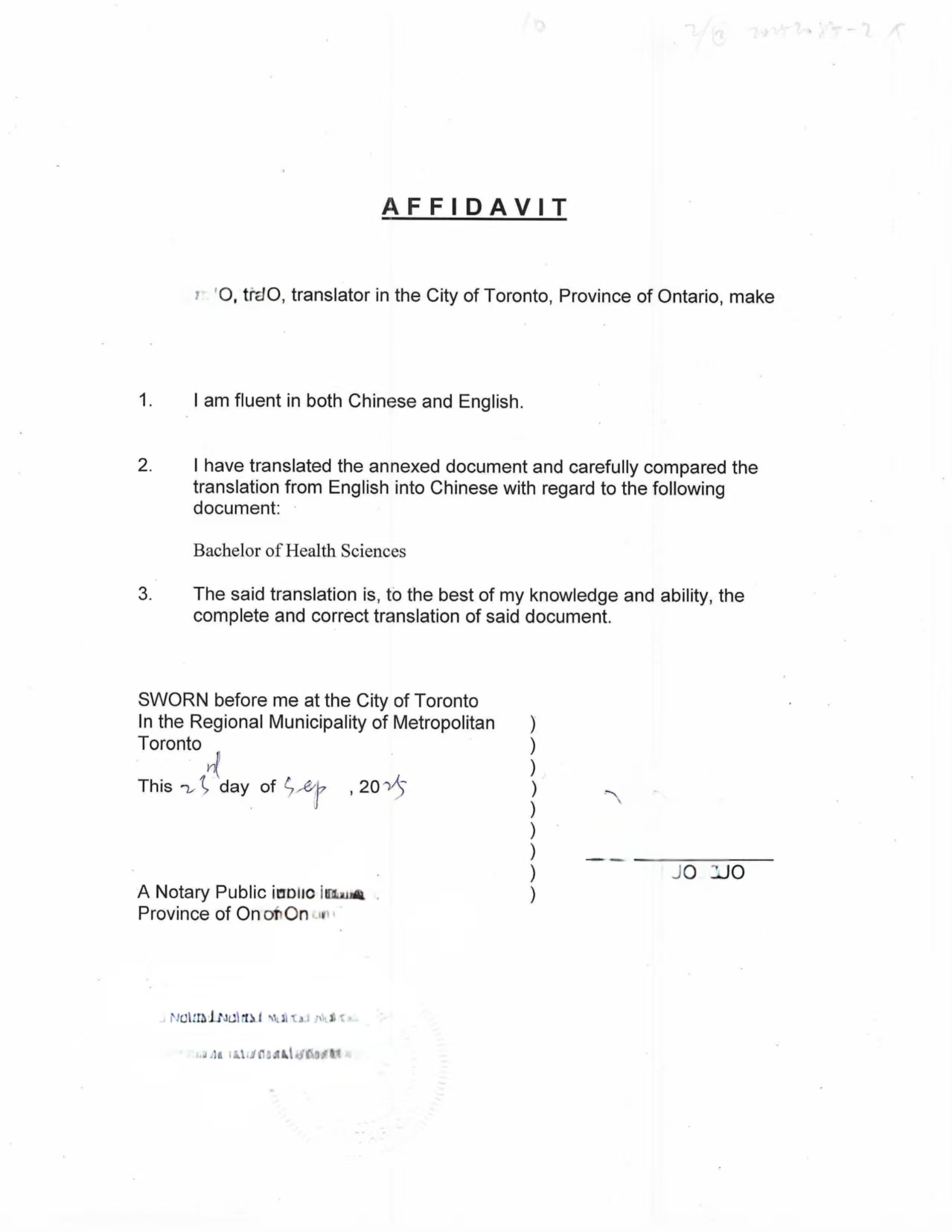 当事人化名 林嘉怡,毕业于加拿大汉密尔顿的麦克马斯特大学,获得健康科学学士学位。近期,她计划回到中国福州发展,在当地求职并申请中国工作签证。根据国内相关用人单位和出入境管理部门的要求,其加拿大学位证书必须经过 英译中翻译、律师公证、以及安省政府海牙认证(附加证明书) 后,方能被中国正式认可。