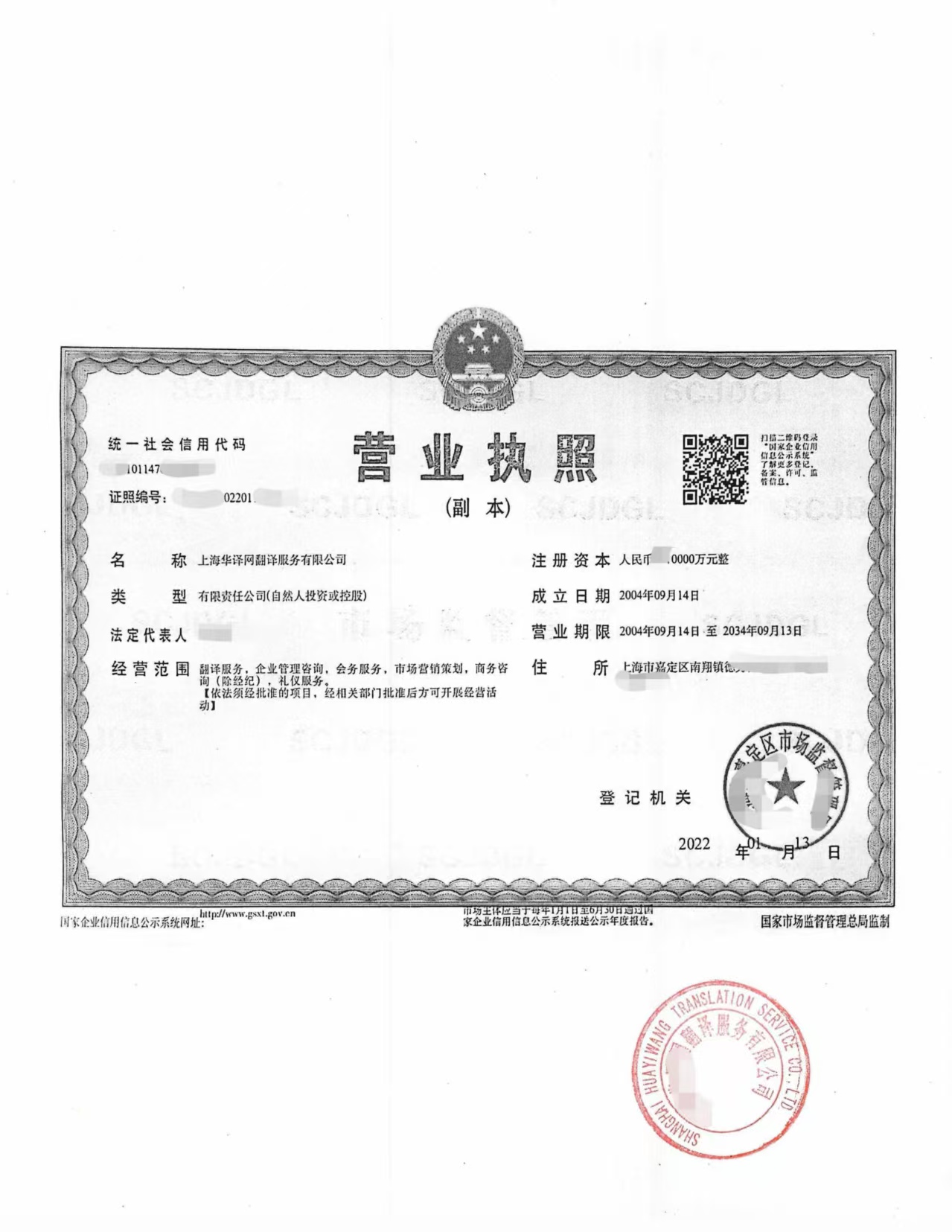 在拿到完整的海牙认证附加证明书之后,我处翻译团队对 认证封面和正文 进行专业英译中翻译。随后,上海华医网翻译公司加盖翻译专用章,并附上营业执照复印件作为资质证明。这一步是整个流程的最后环节,确保中国政府和法院在审核时无障碍接受。