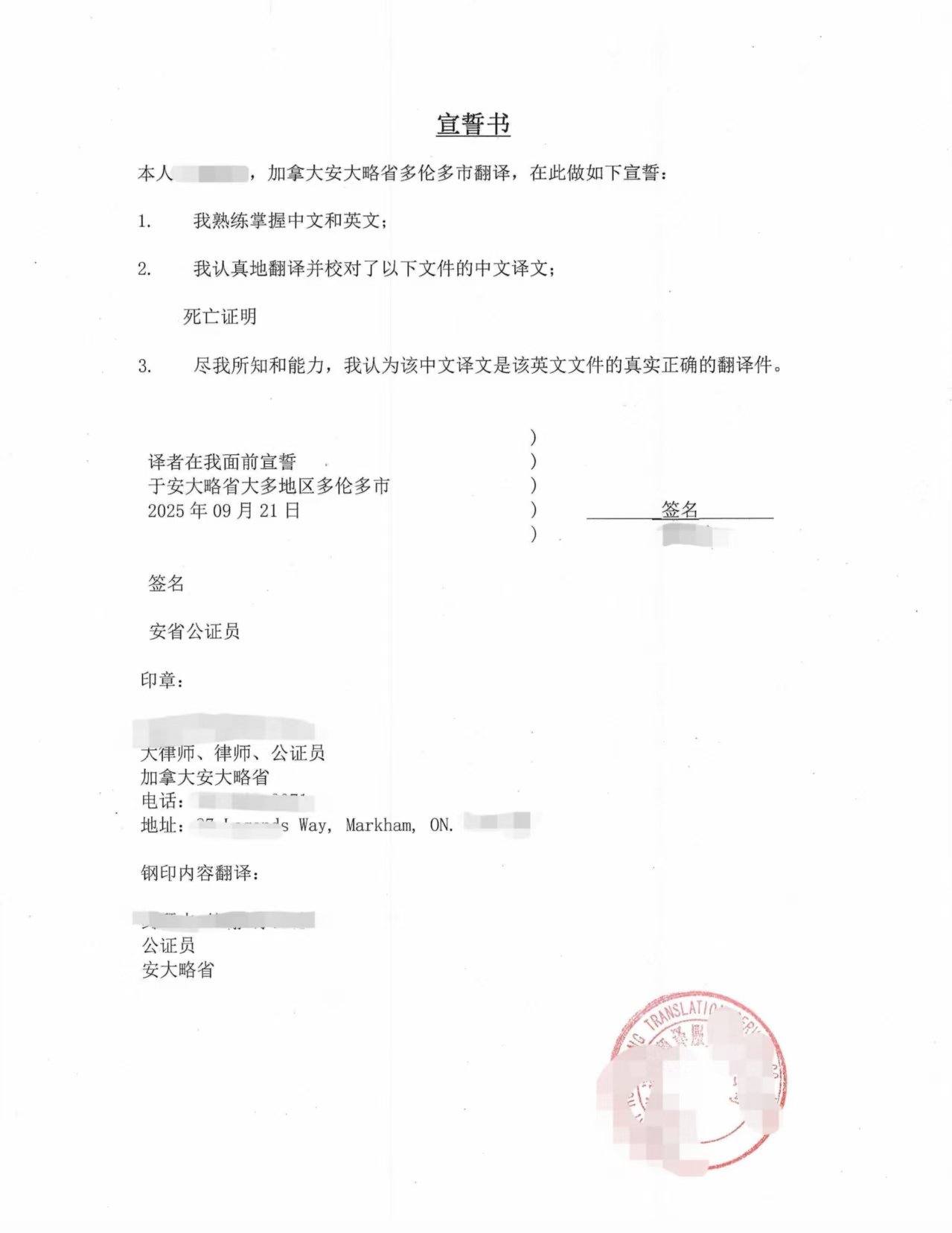 20254315 海牙认证样本 封面与宣誓书 翻译盖章 pdf