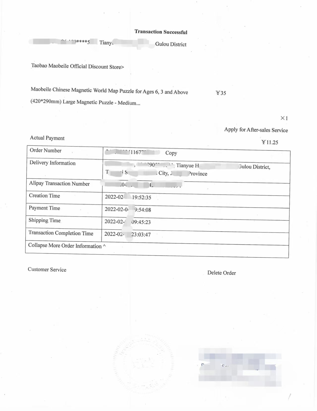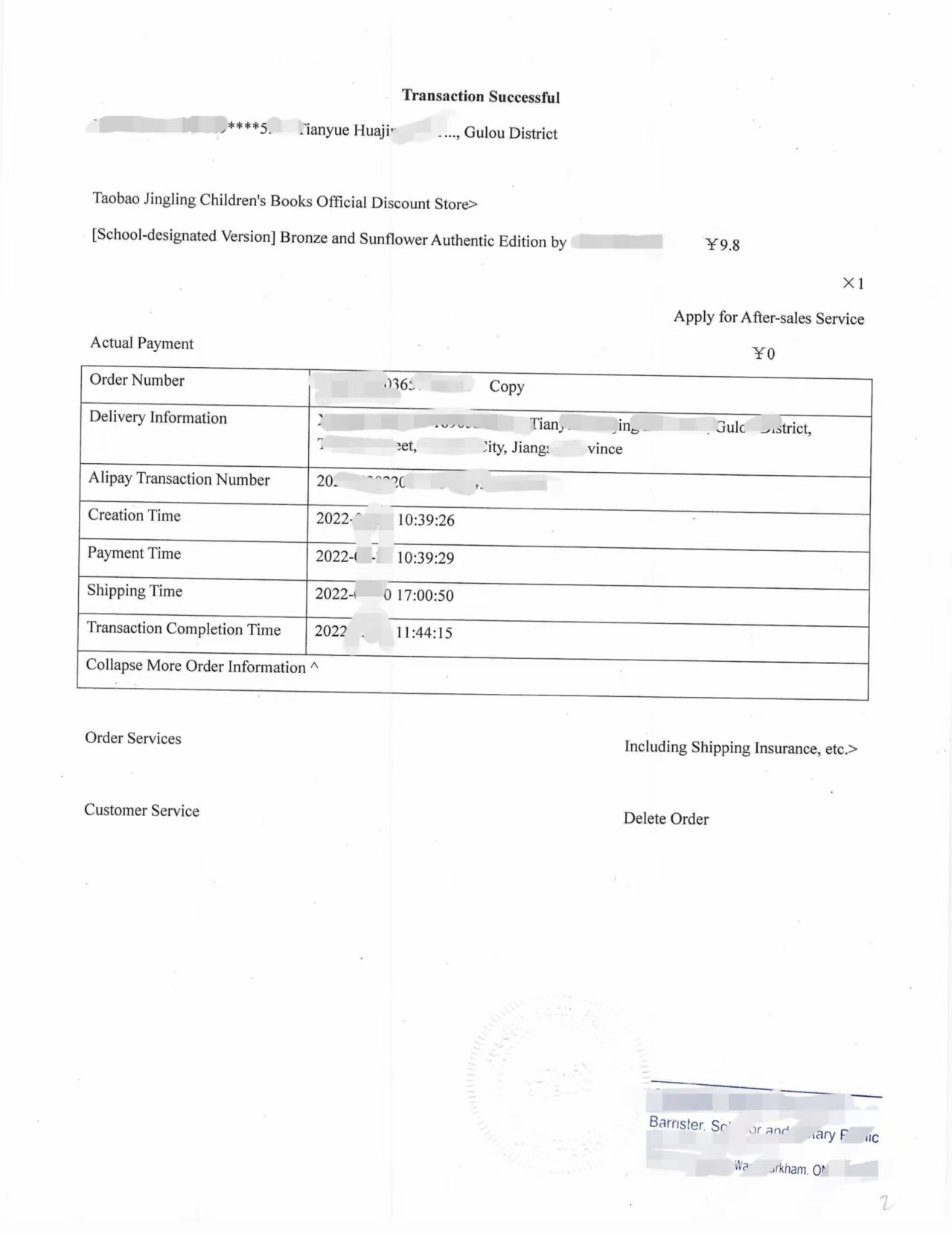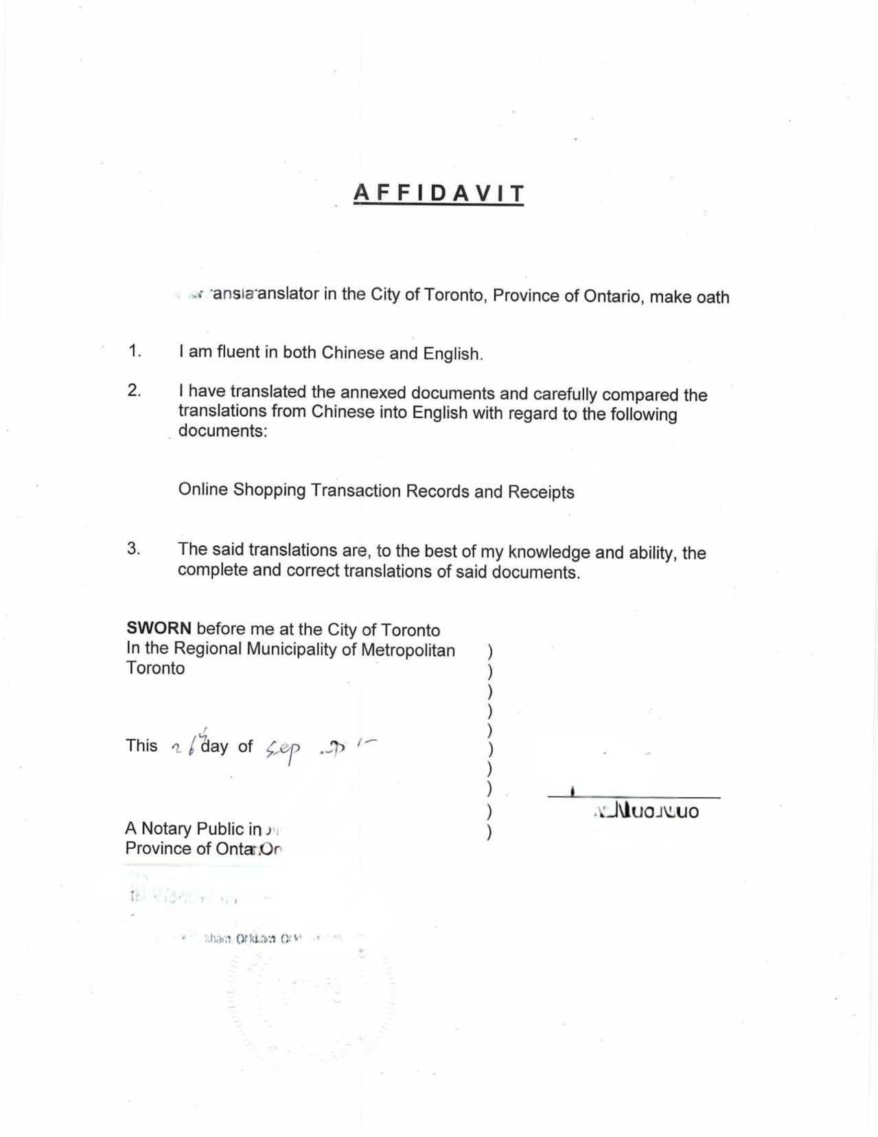 在2025年9月,一位居住在加拿大的华人客户通过华译网公证处,成功办理了中国网上购物单据及发票的翻译与公证。客户的特殊需求是:这些文件要递交给加拿大移民局,用于担保子女移民的申请过程,以证明其在中国境内长期提供的经济支持。