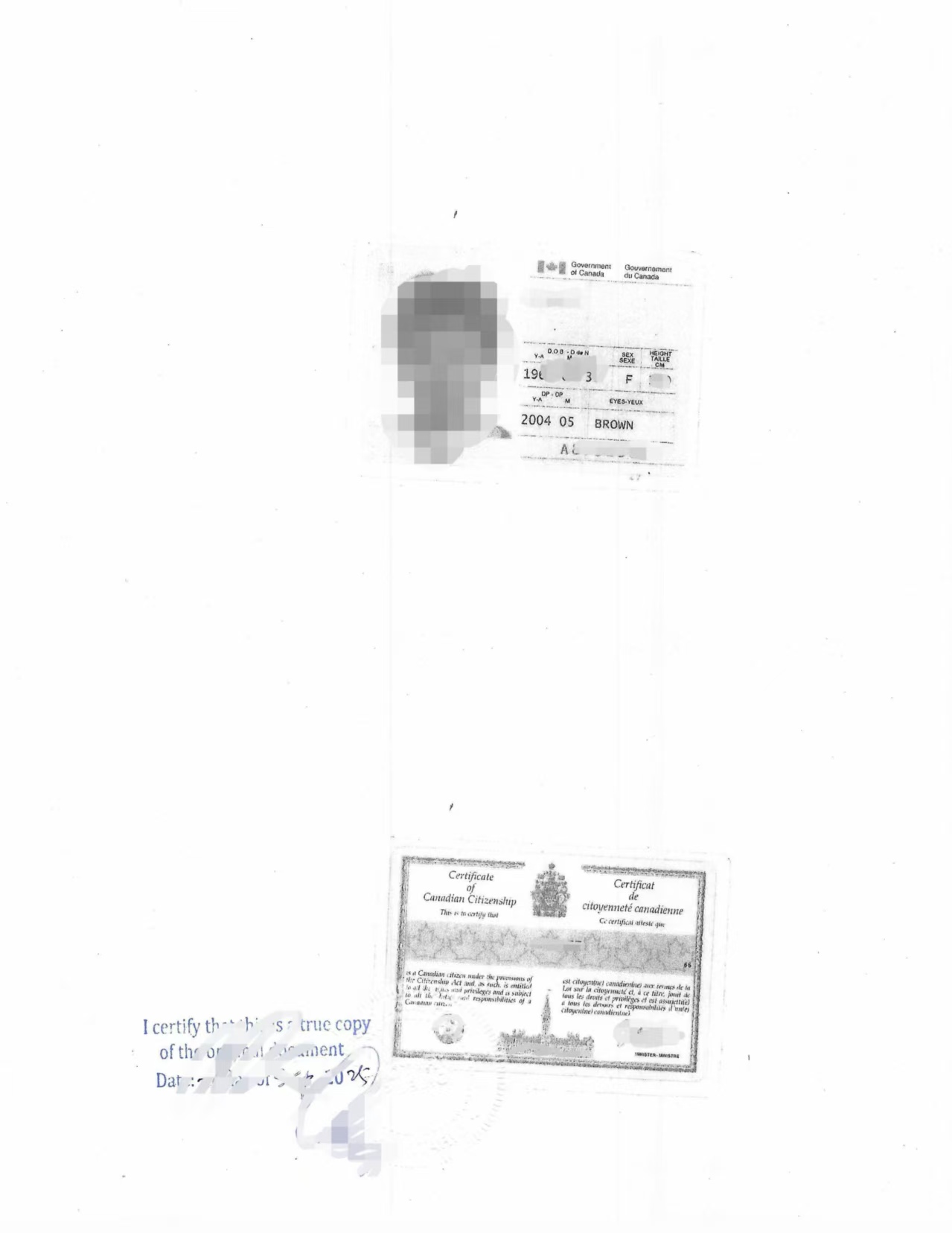 当日,加拿大的持牌公证律师(Notary Public)首先对公民卡进行了公证,确认其真实性与合法性。随后,文件被立即递交至所在省份的认证机构(例如安大略省司法部或魁北克省相关部门),直接加盖 海牙认证章(Apostille)。整个流程不需要经过加拿大外交部,仅依靠省级机关完成即可,合法且高效。