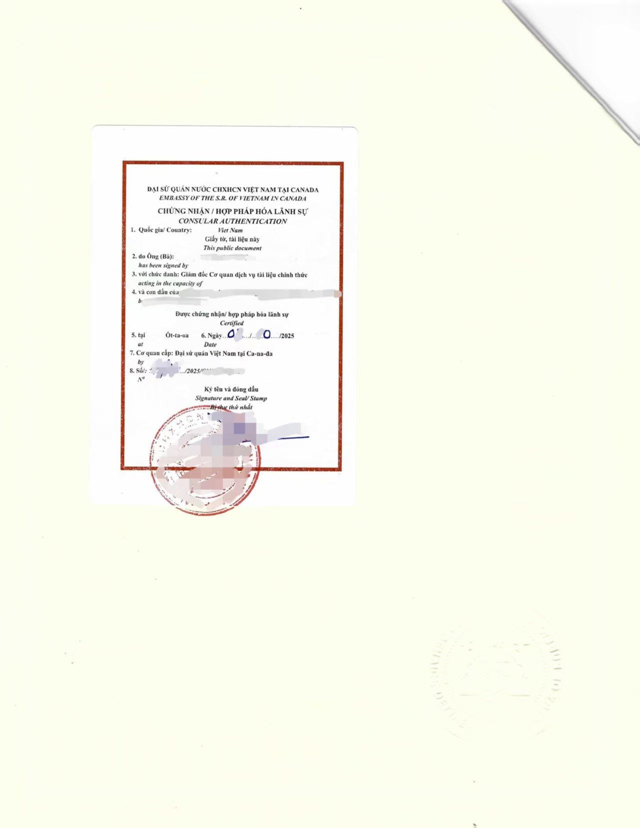 2025年9月,王明顺利取得由越南驻加拿大领事馆签发的 领事认证单身声明书。凭此文件,他在越南相关公证机构完成了继承手续的前置审查,遗产继承程序得以顺利推进。