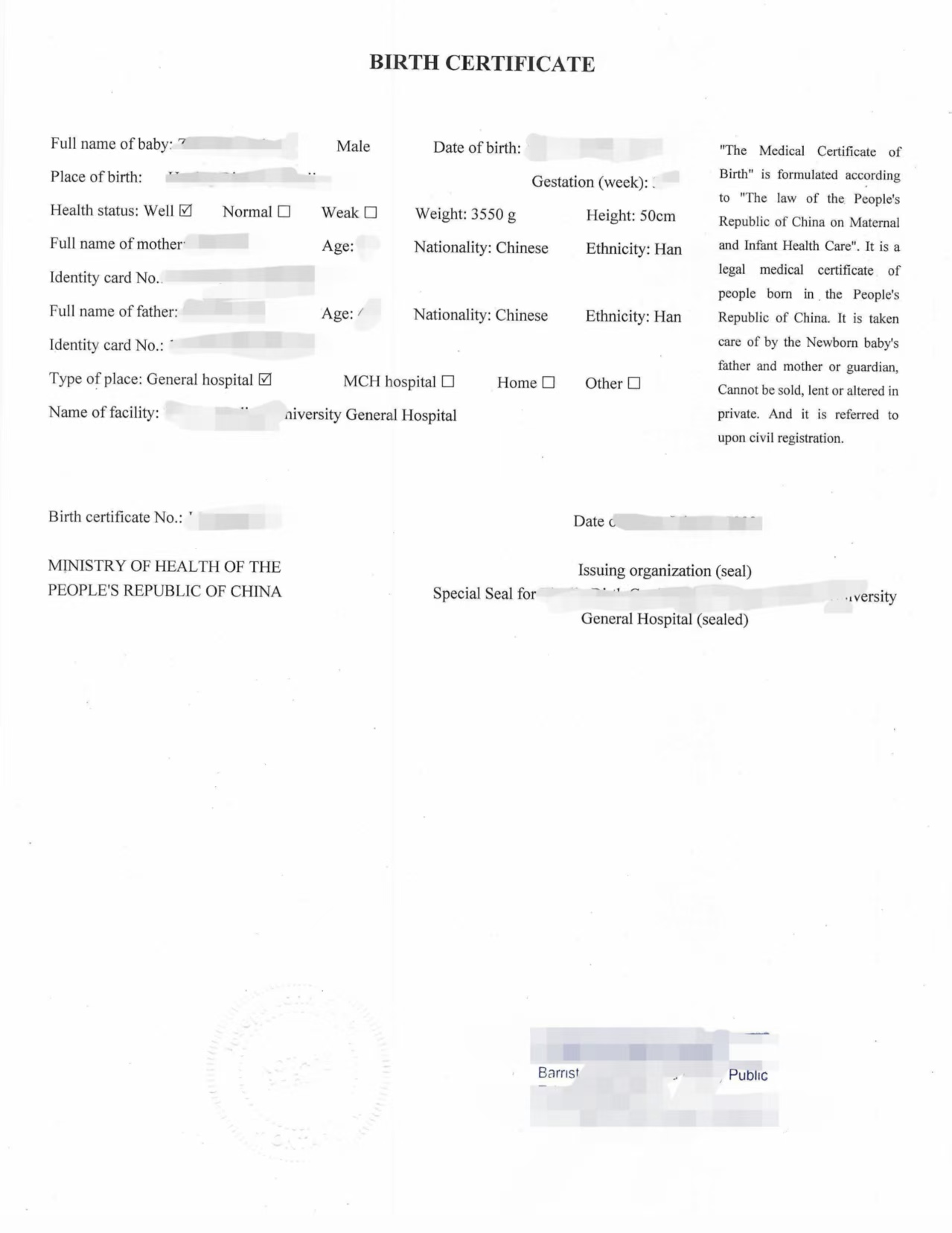 当事人 Li Yuhan(李雨涵)女士(化名),现居加拿大安大略省渥太华市,系中国留学生移民家庭。其子女出生于中国天津市,并持有由 天津医科大学总医院 签发的《出生医学证明》。