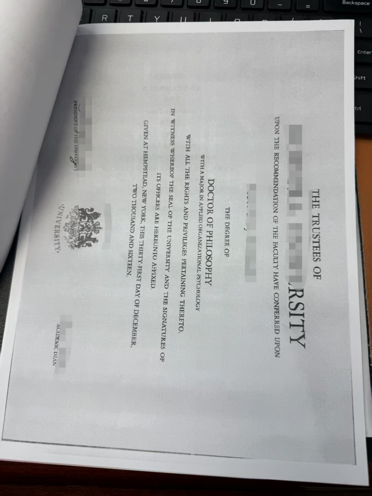 当事人于霍夫斯特拉大学完成博士学位课程,取得正式学位证书。为认证使用,学校提供一份带签字、印章的正式副本。