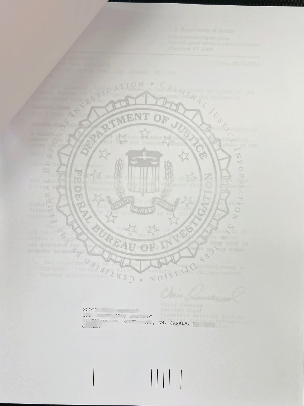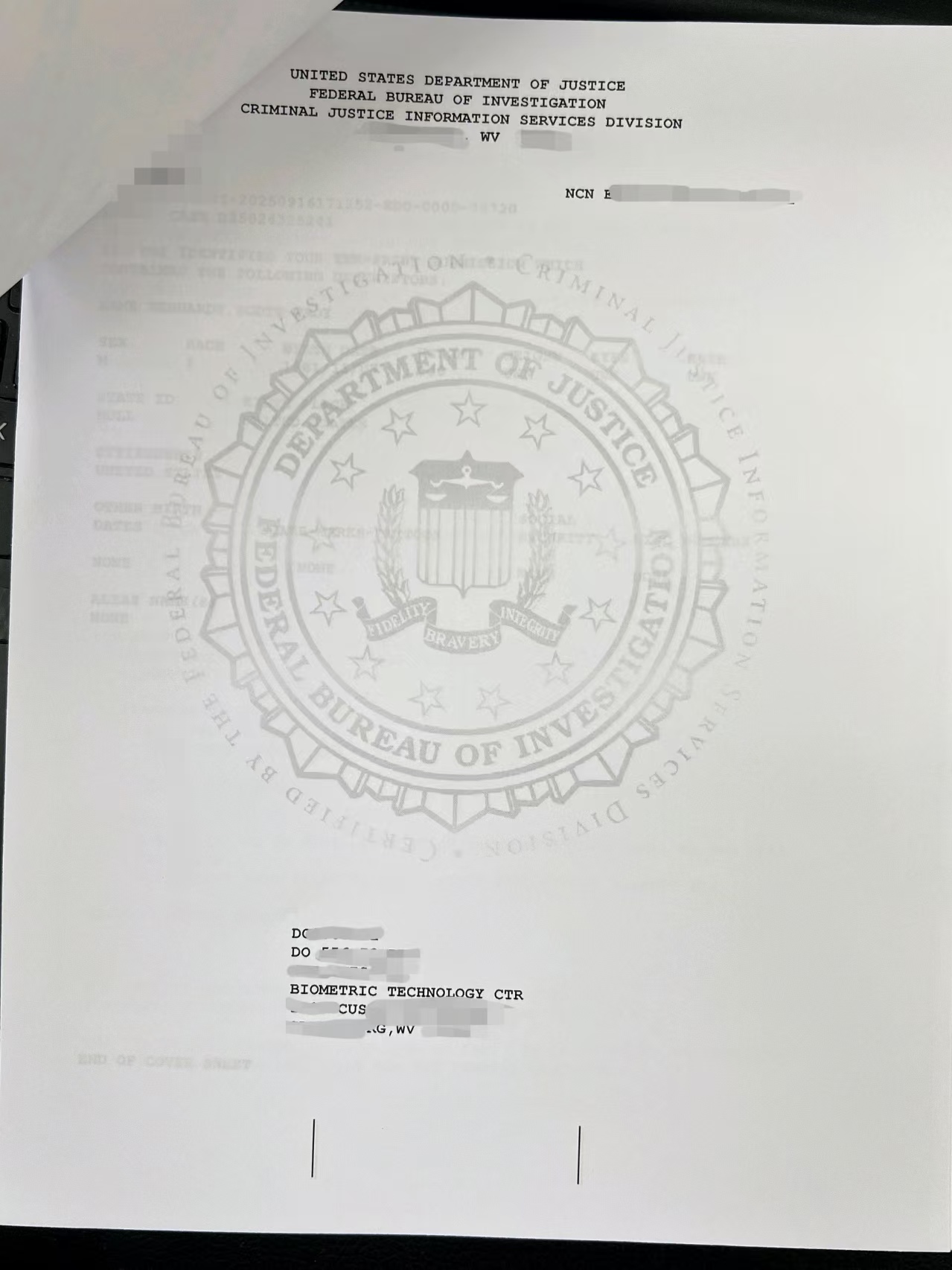 申请人通过FBI官方网站提交申请,附带电子指纹卡(可在授权指纹采集点录入),并支付申请费用。FBI审核后出具纸质《Identity History Summary》,列明曾有一条轻罪记录,结案日期及结果清晰标注。