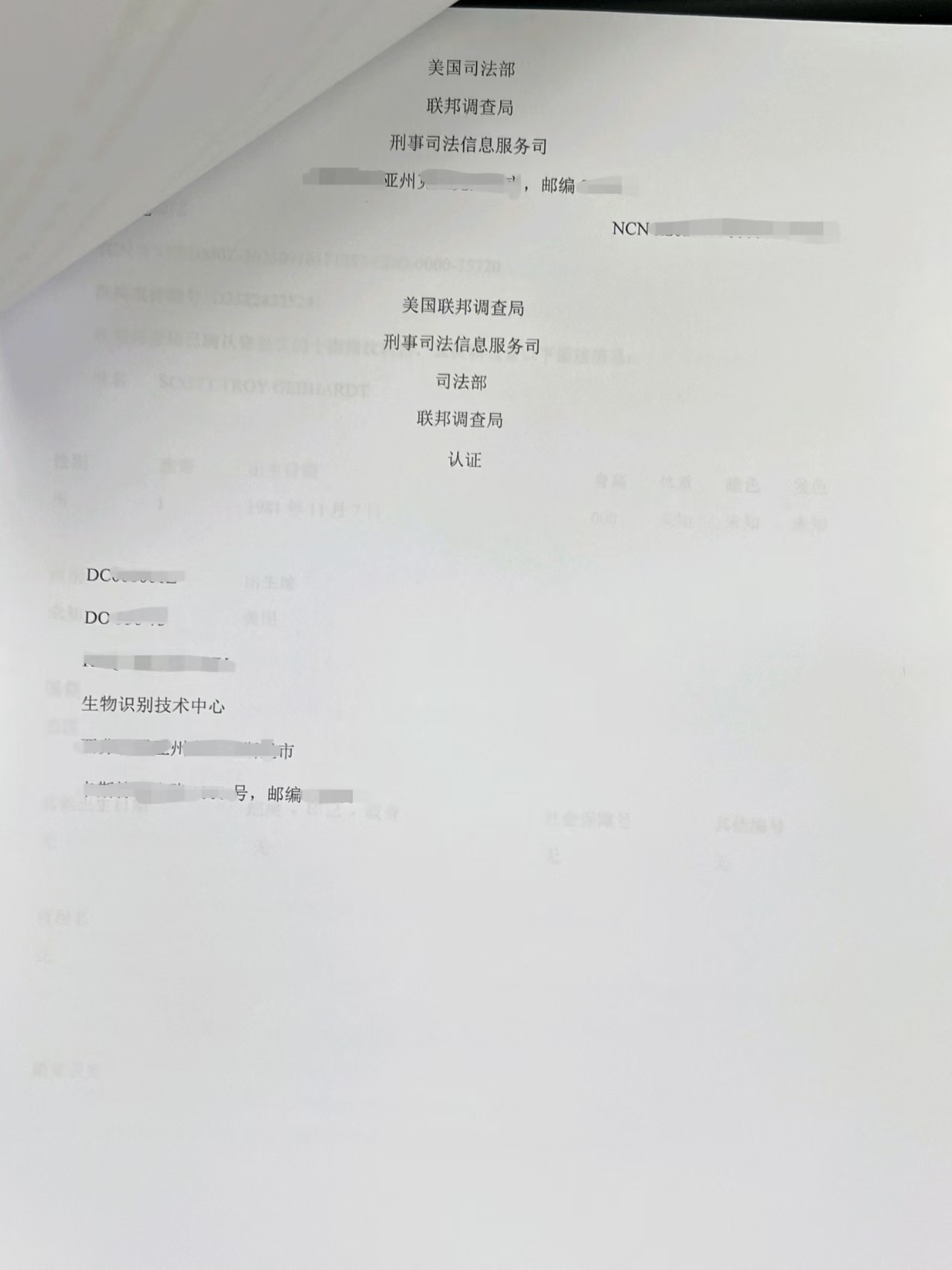 文件类型:FBI犯罪记录摘要(Identity History Summary)