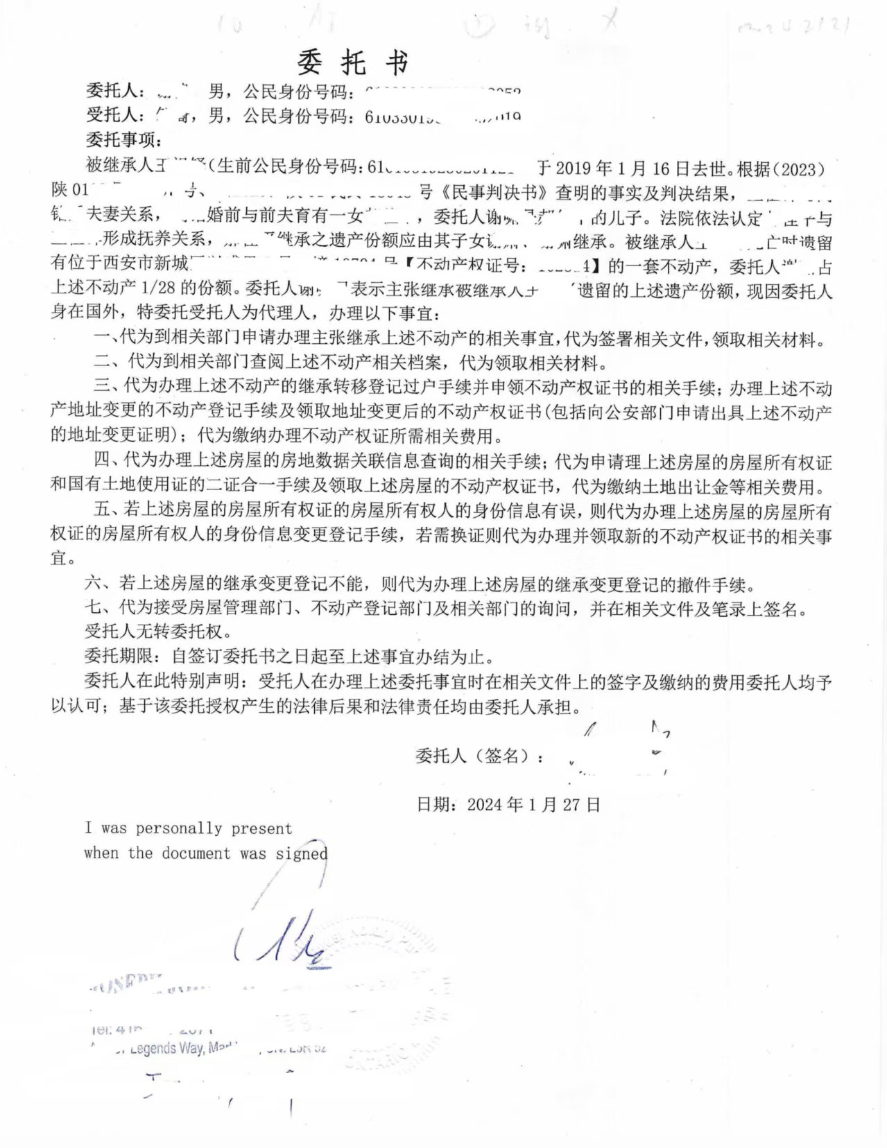 公证员或律师签章与认证编号。
