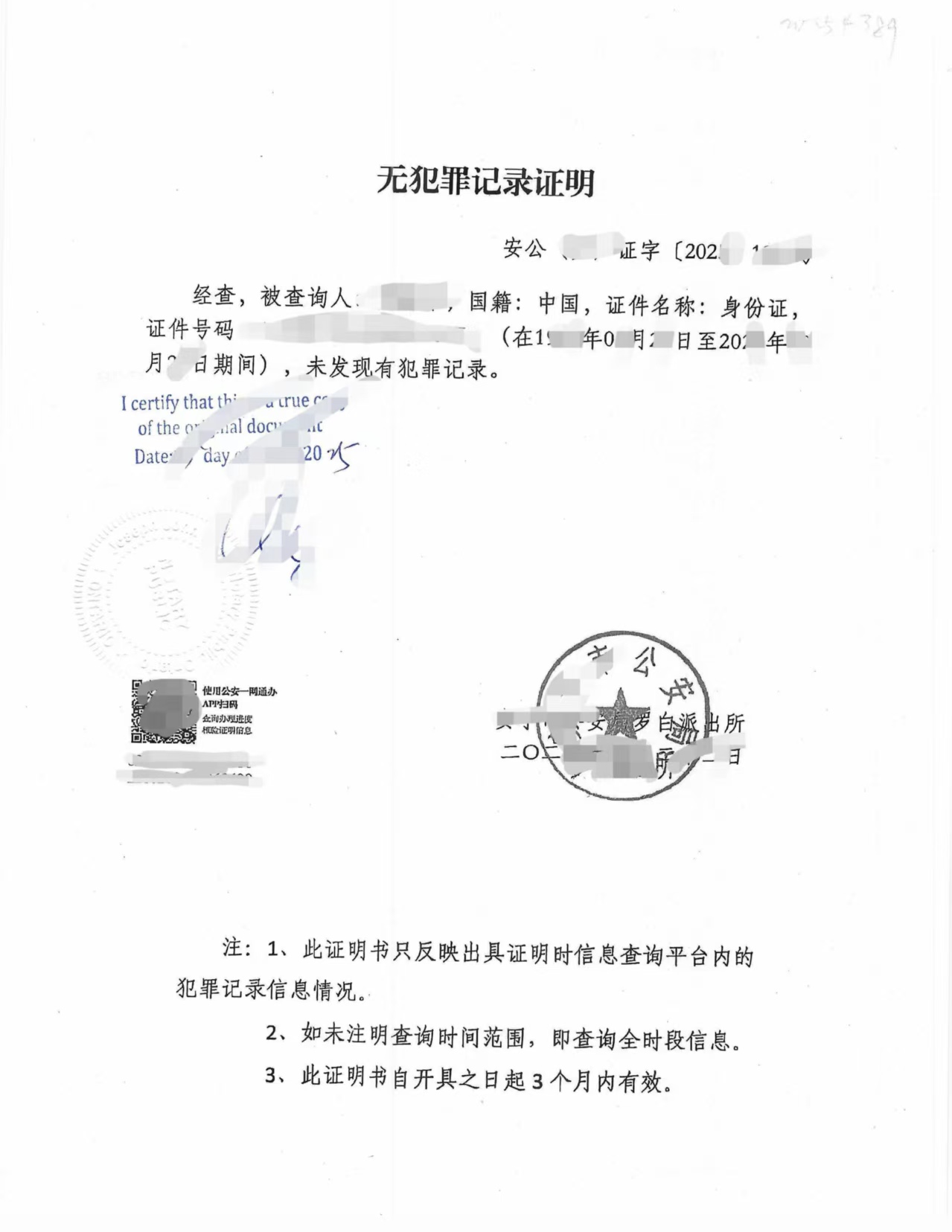 客户随即联系派出所申请重新开具新版证明,内容改为“经核查,该人自出生至今无犯罪记录”。新版文件于2025年10月23日签发,仅用一天时间完成,效率极高。