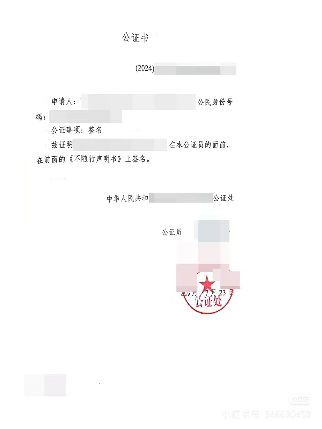 2.娃随亲戚 / 老师等非监护人出行:父母双方都得办同意声明公证