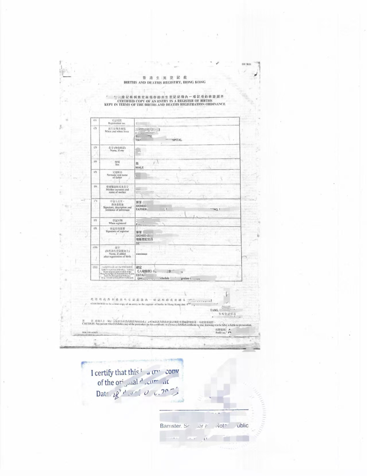 📜 出生证明复印件(Birth Certificate)