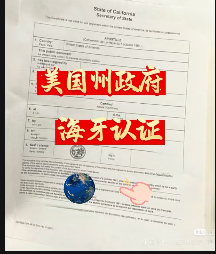 每一份海牙文件都是由美国州政府(Secretary of State) 签发的正式认证原件。