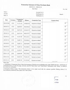 经加拿大公证认证后的中英文对照版招商银行交易流水被加拿大税务局(CRA)正式接受,作为张先生2024年度在中国获得薪资收入的合法证明文件。
