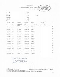 “I, a certified translator of Canadian Huayi Translation Inc., hereby certify that the attached English translation is a true and accurate translation of the original Chinese document.”