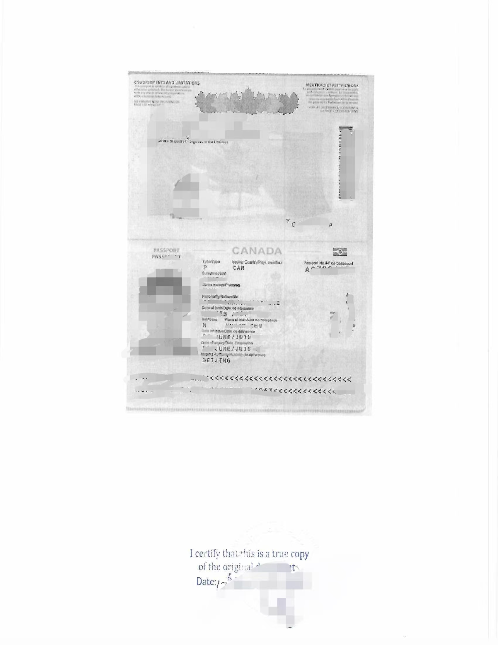 身份文件(加拿大护照)公证