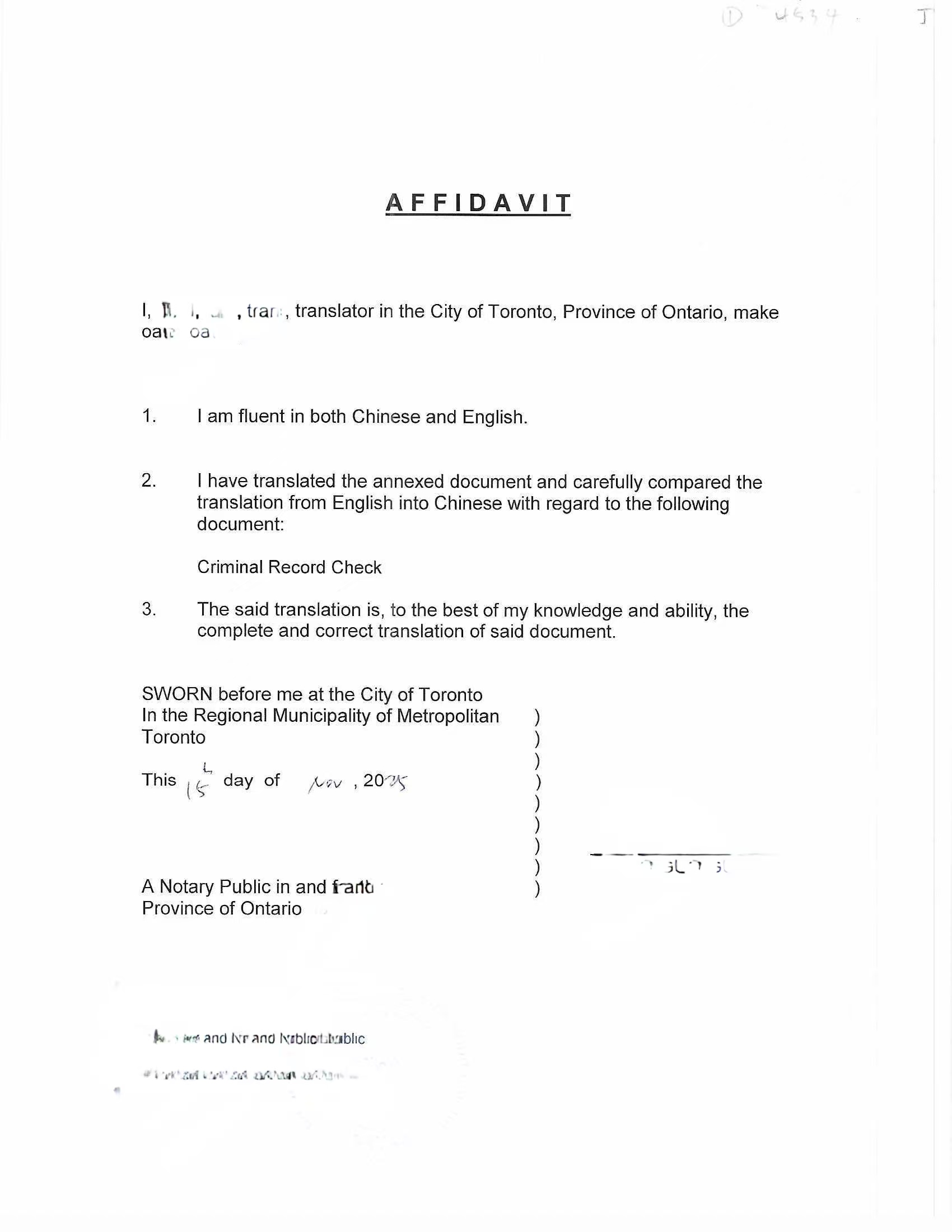 多伦多犯罪记录检查英译中翻译公证海牙认证