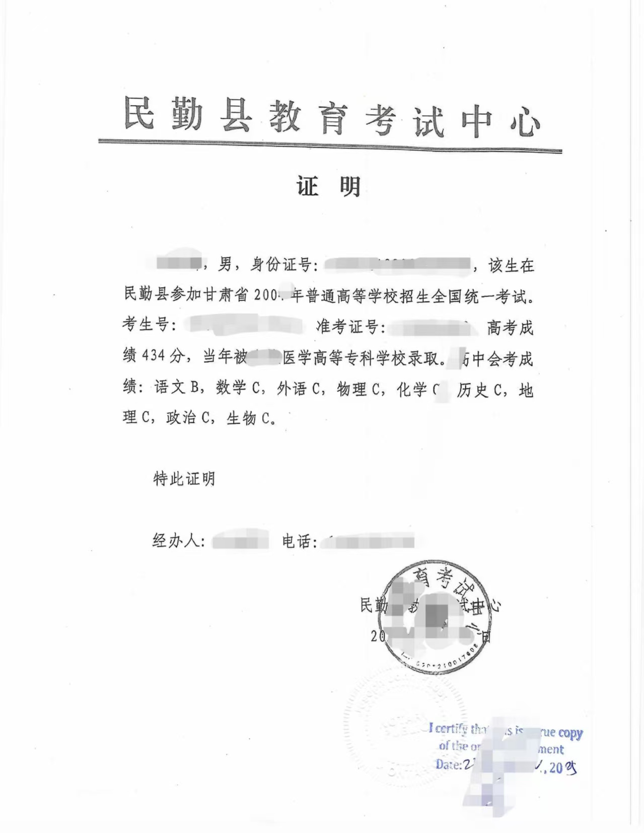 20254569 材料1-2 翻译公证样本 高考证明 pdf