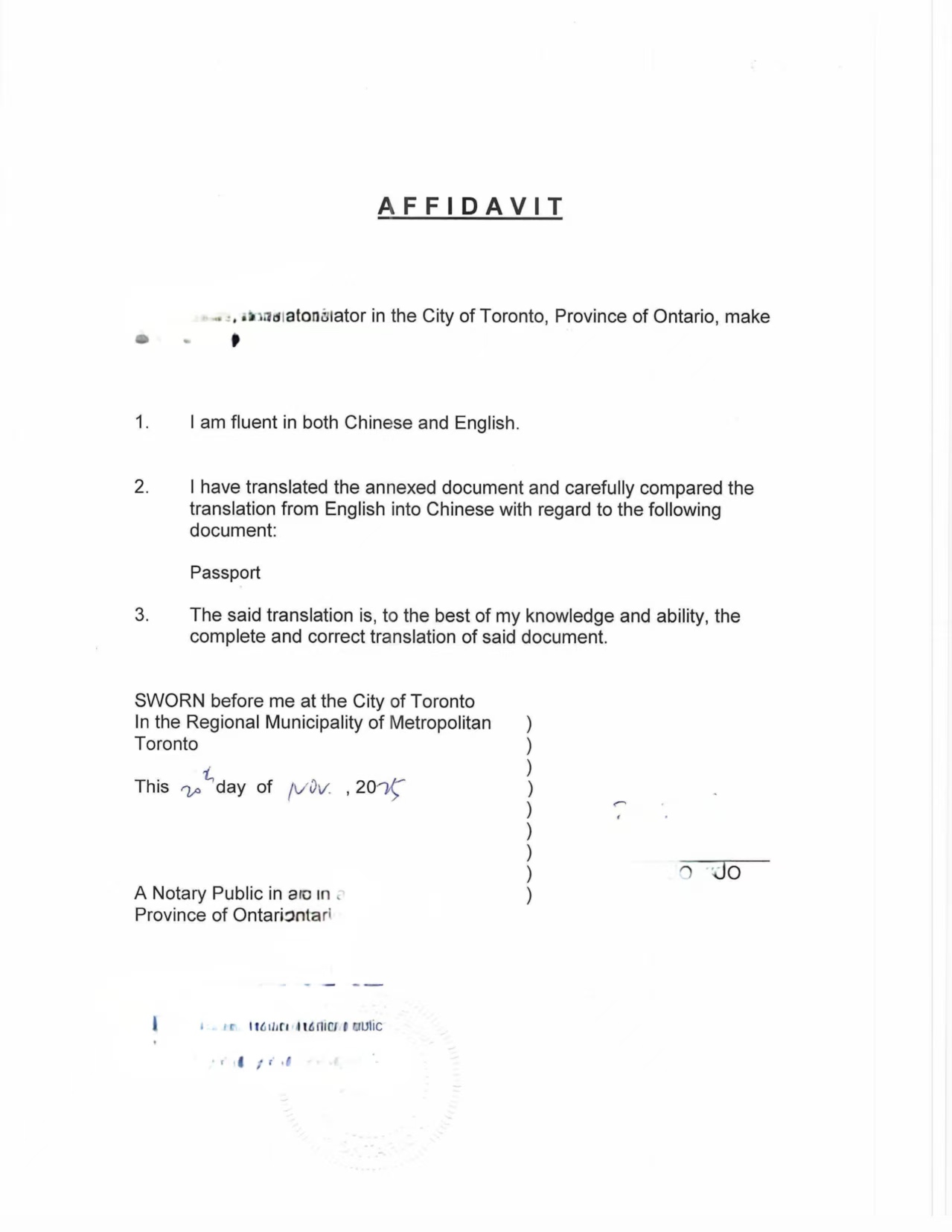 1. 文件翻译与宣誓书准备
