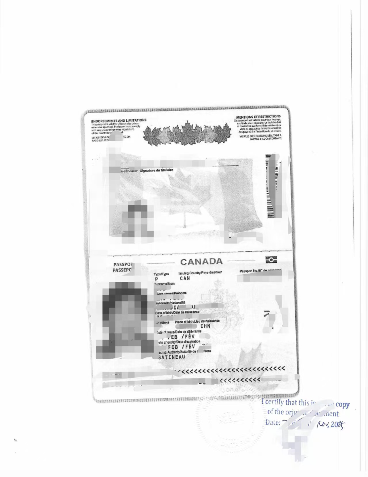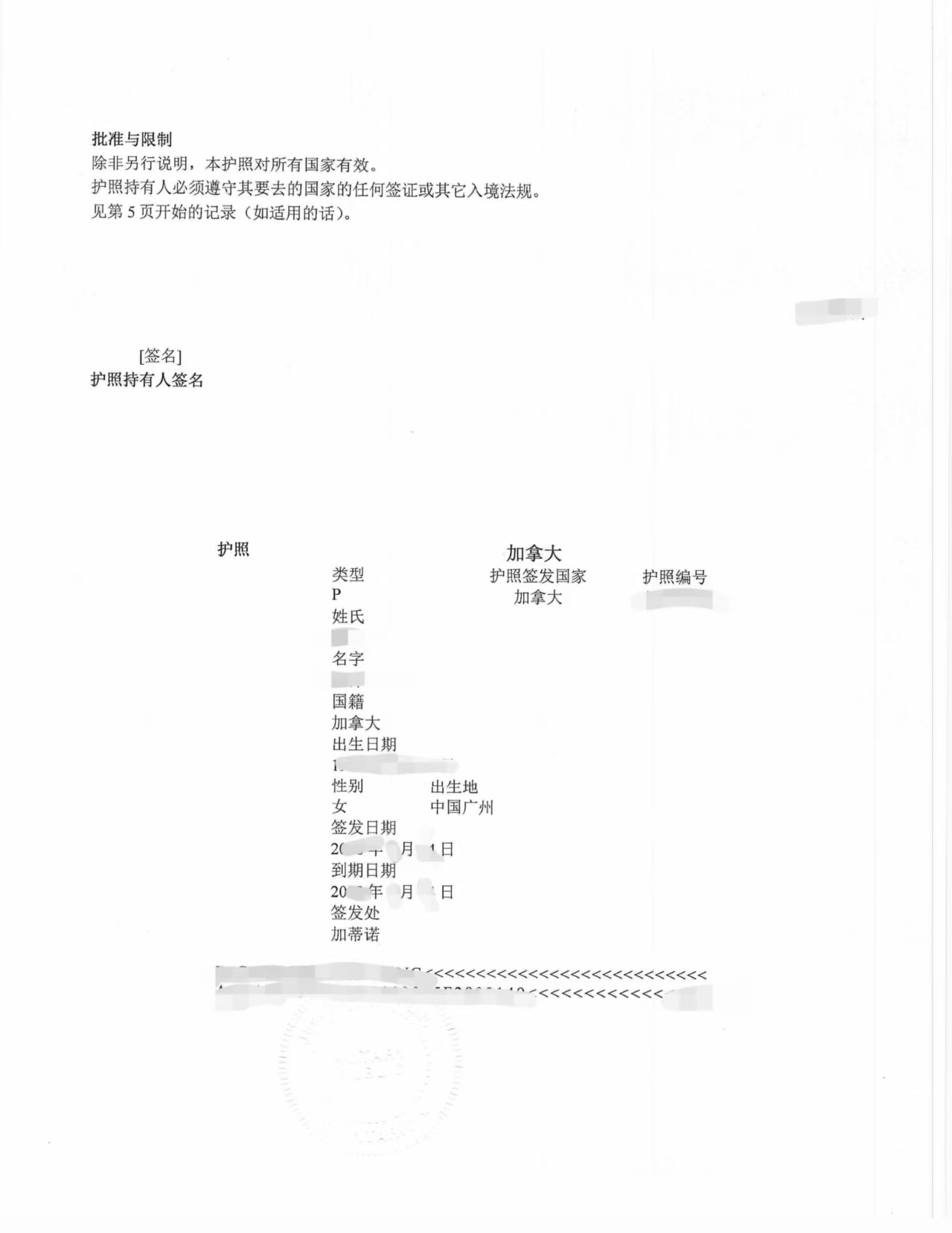 加拿大护照的公证认证副本