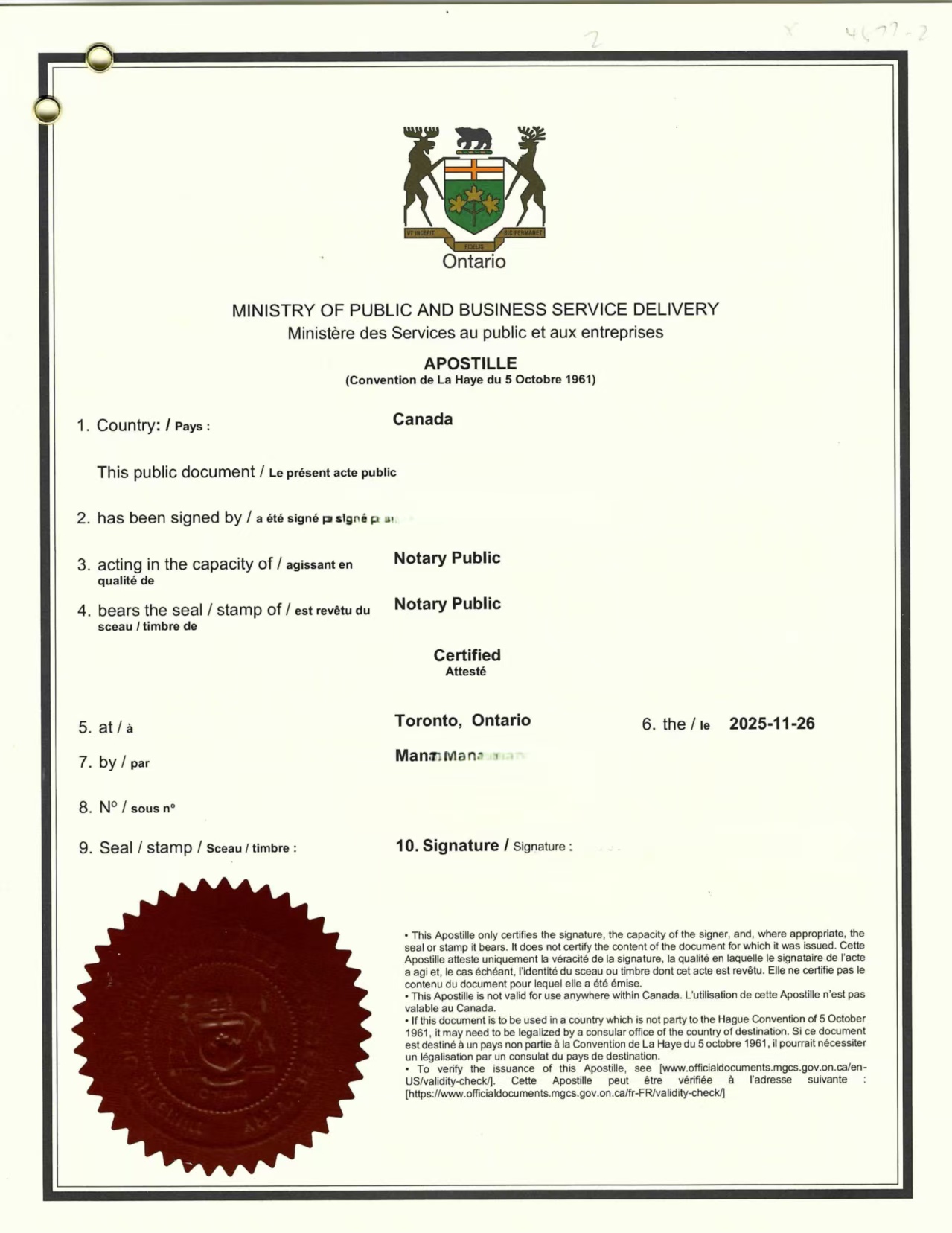 ✍ 国际公证 + 加注(附加证明书)|2天完成