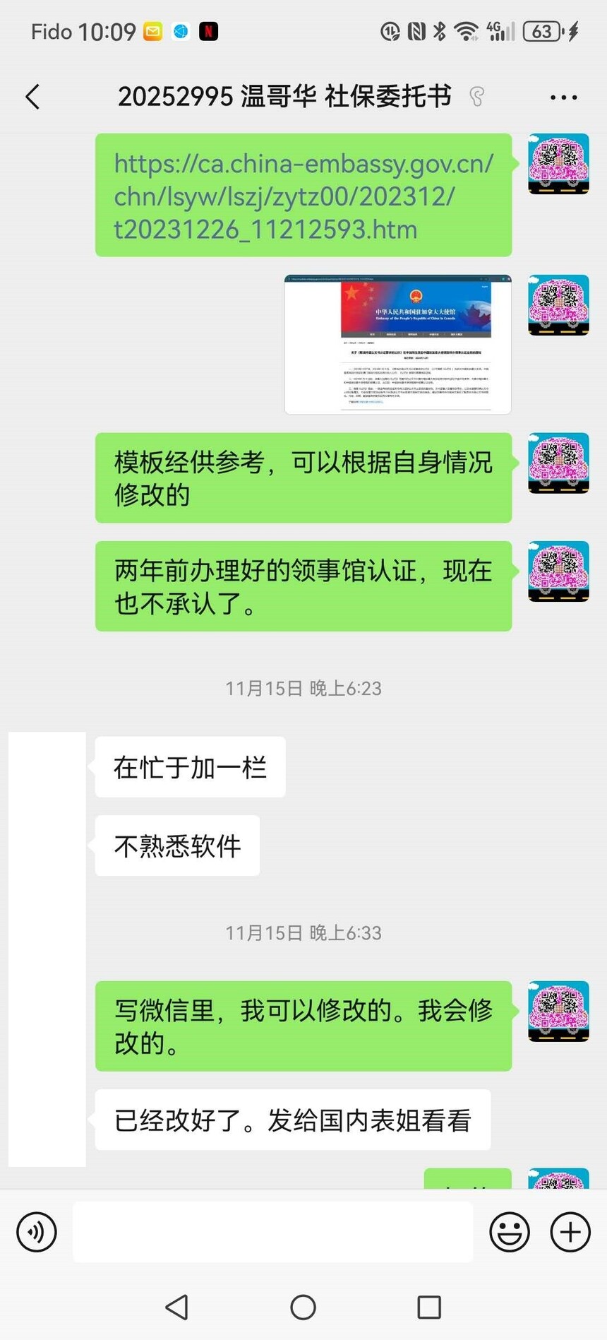 最近接到很多来自加拿大华人的咨询,尤其是需要给国内家人办理 委托书、声明书、社保待遇、继承放弃等。今天分享一个我亲自处理的真实案例,全程只用微信完成,对不熟悉电脑的叔叔阿姨特别友好。