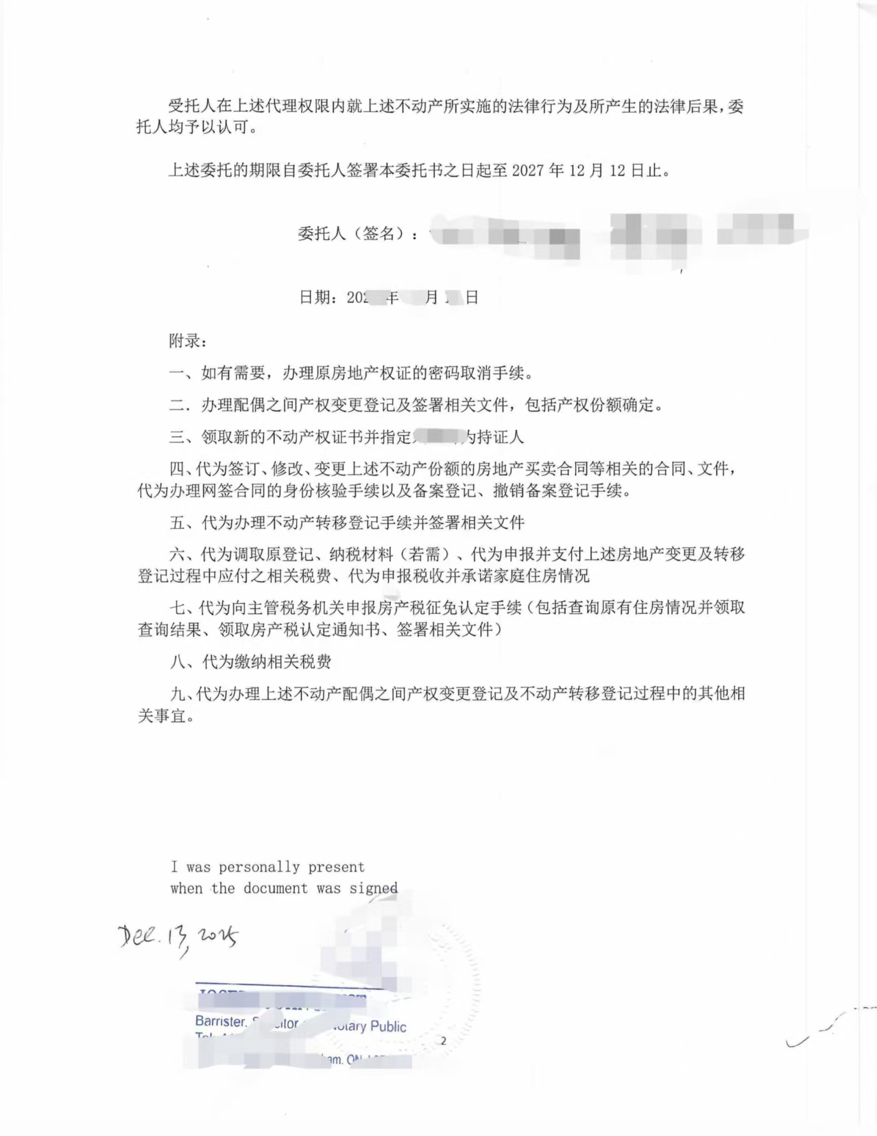 加拿大旅居华人委托国内亲友办理上海浦东房产产权划分与转让|委托书海牙认证案例