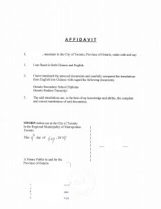 成绩单与毕业证的中译英对照翻译 → 翻译宣誓(Affidavit)→ 公证 → 安省政府海牙认证。