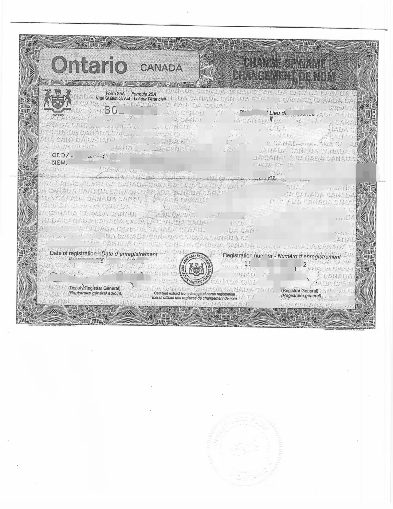三是姓名变化的合法来源,即加拿大官方出具的更名证;