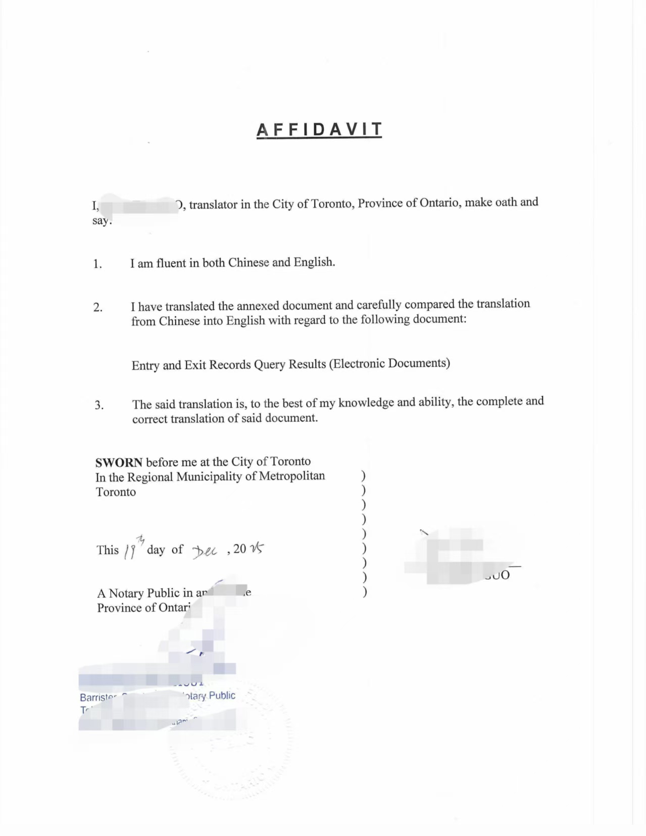 本案例表明,中国国家移民管理局出入境记录作为官方电子文件,在加拿大使用时,必须配合专业、合规的翻译公证流程,方可被移民、身份或合规审查机构正式认可。