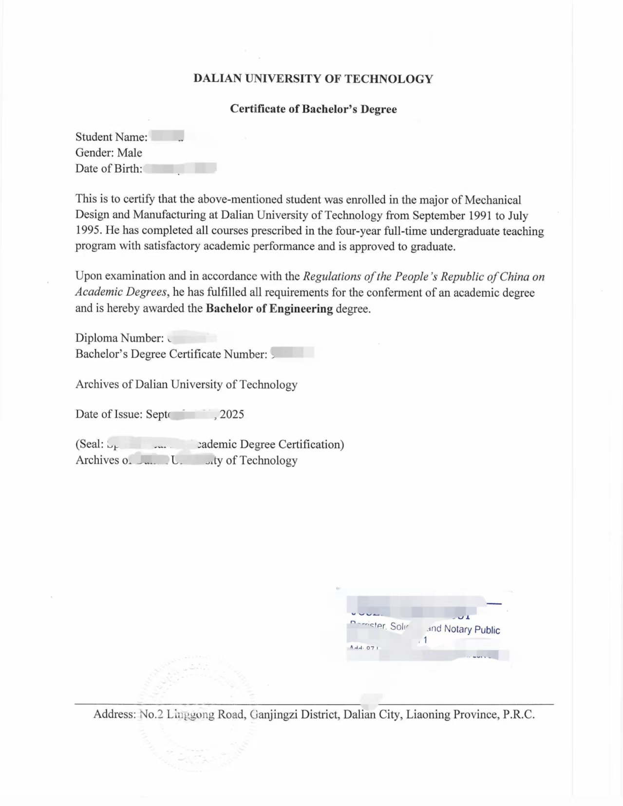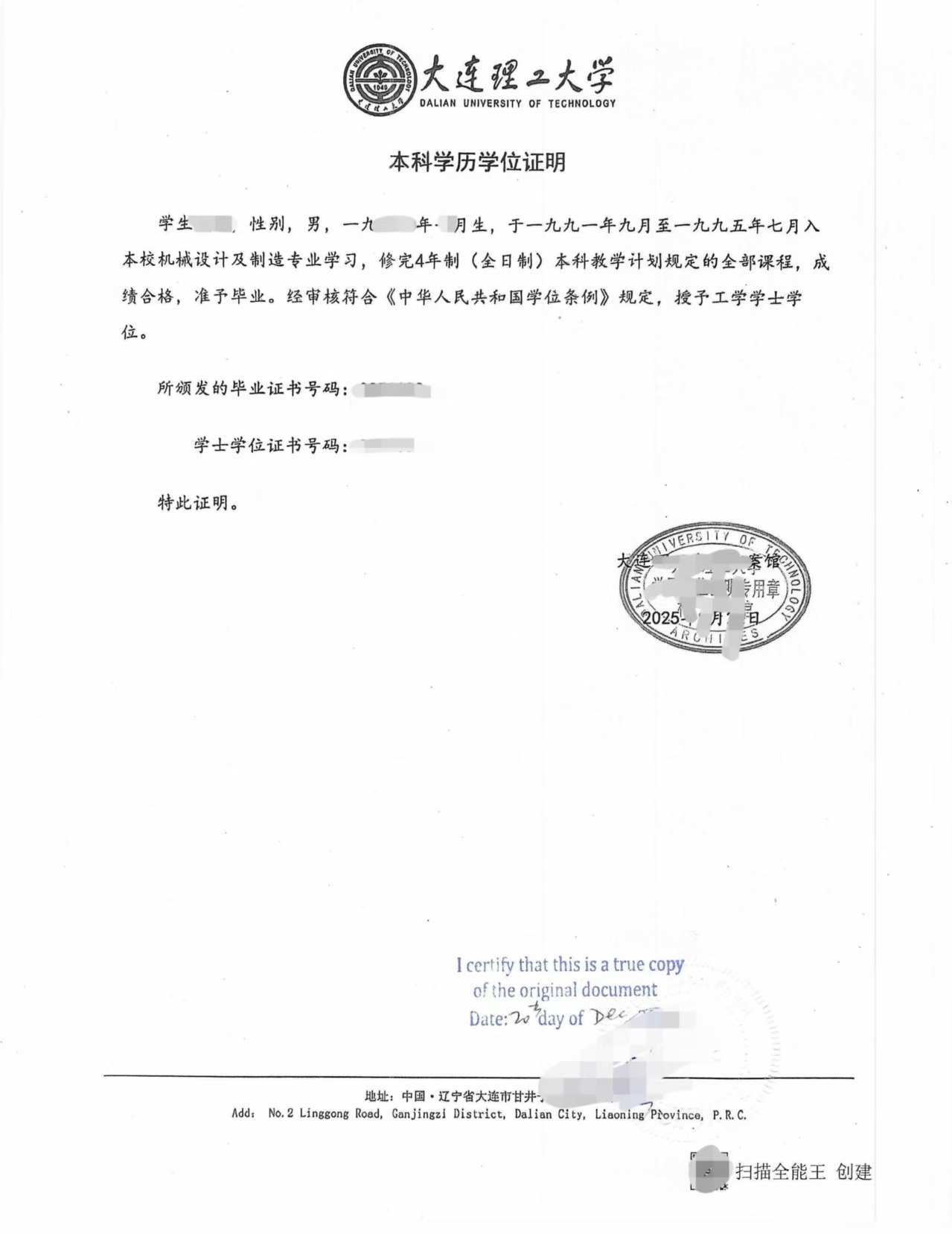 王先生(化名)早年毕业于国内重点高校——大连理工大学,本科专业为机械设计与制造。毕业多年后,王先生移居加拿大,计划办理学历评估及后续移民、就业相关手续。在准备材料过程中,他发现原始的本科毕业证和学位证已经遗失,且年代久远,无法重新补办原件证书,这一问题一度让他非常焦虑。