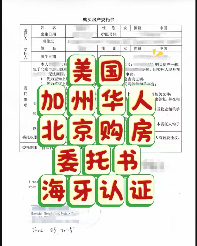 旅居美国加州的华人李先生(化名)拟在北京购房,因无法亲自回国办理,需办理购房委托书海牙认证。这一认证是跨国文书合法流转的关键,最终他通过华译网公司的专业服务顺利办结,为购房手续扫清障碍。
