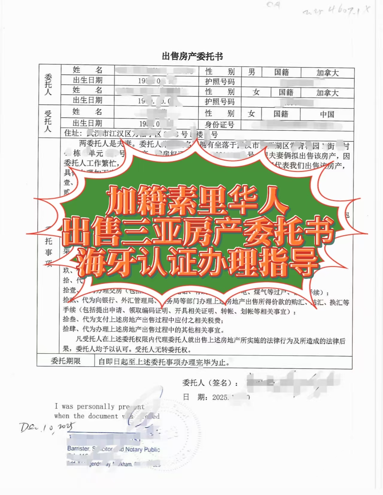 居住在加拿大素里的华人陈先生,因不便亲自回国处理三亚房产出售事宜,需办理房产委托书海牙认证,经朋友推荐选择了华译网翻译公证海牙认证服务中心协助办理。以下是结合其办理经历整理的完整流程,供同类需求者参考。