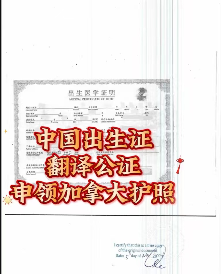 认证后的出生证公证书、加拿大公民证明(如公民卡)、身份证件、护照照片及填写完整的护照申请表。