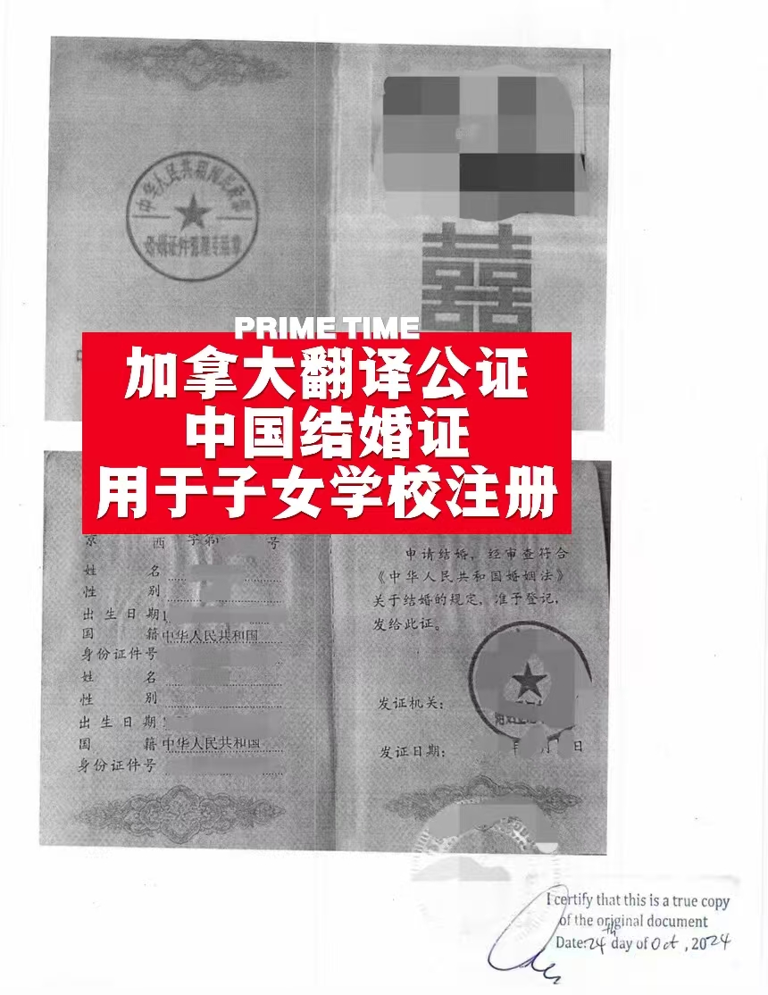 在加拿大,持有中国结婚证的父母在为子女办理学校注册时,常需提供结婚证的公证认证文件。