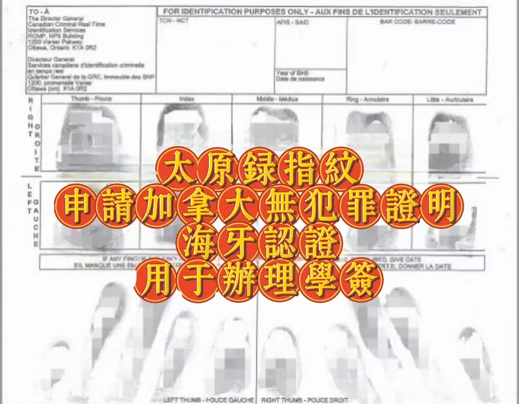 指纹采集:在太原指定机构完成符合RCMP标准的指纹采集,华译网提供指导确保符合要求。