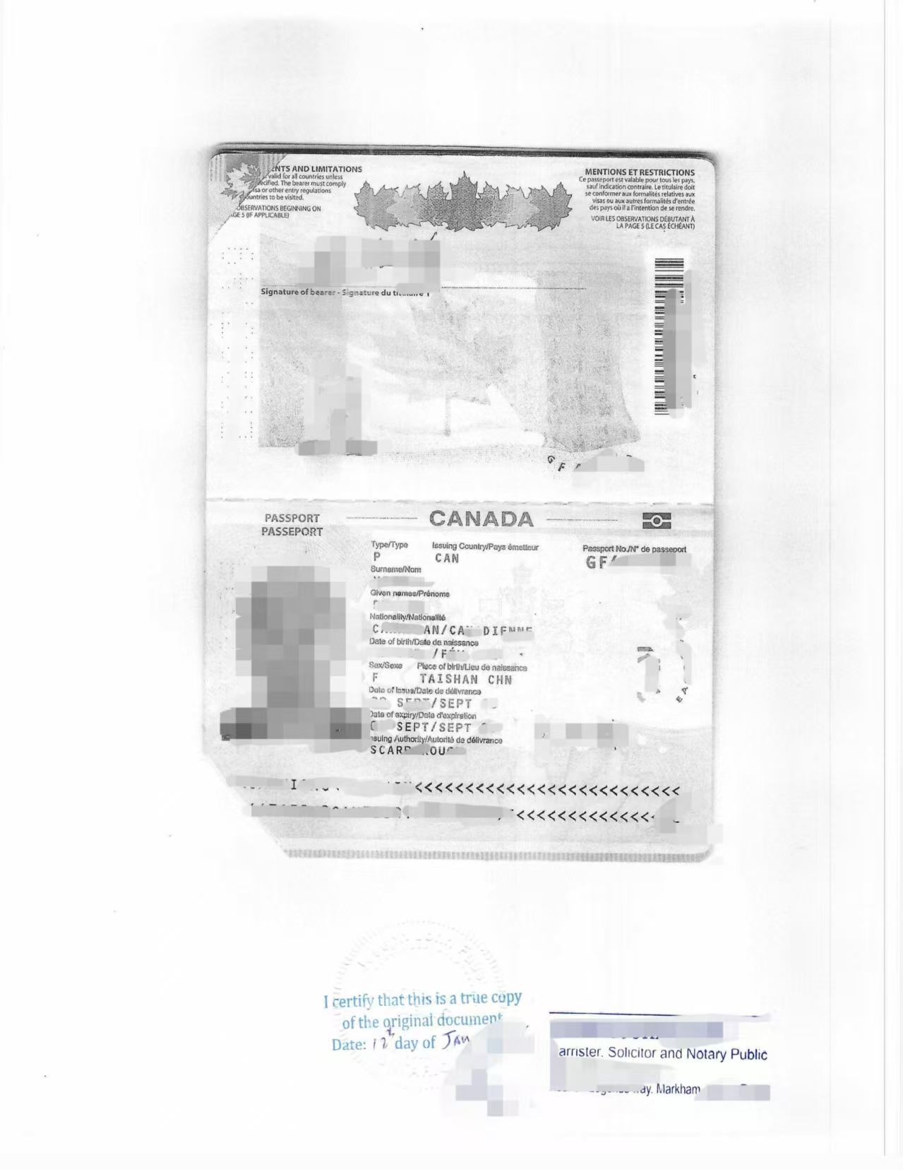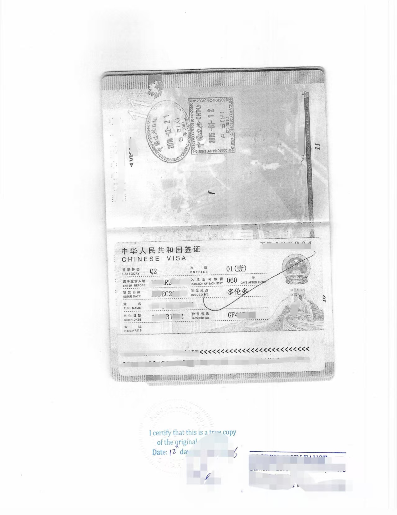 我司接受委托后,首先对李女士提供的加拿大护照首页及中国签证页进行专业预审,确认页面内容完整、信息清楚、签证章可识别,符合制作“True Copy of Original(复印件与原件一致)”声明的条件。
