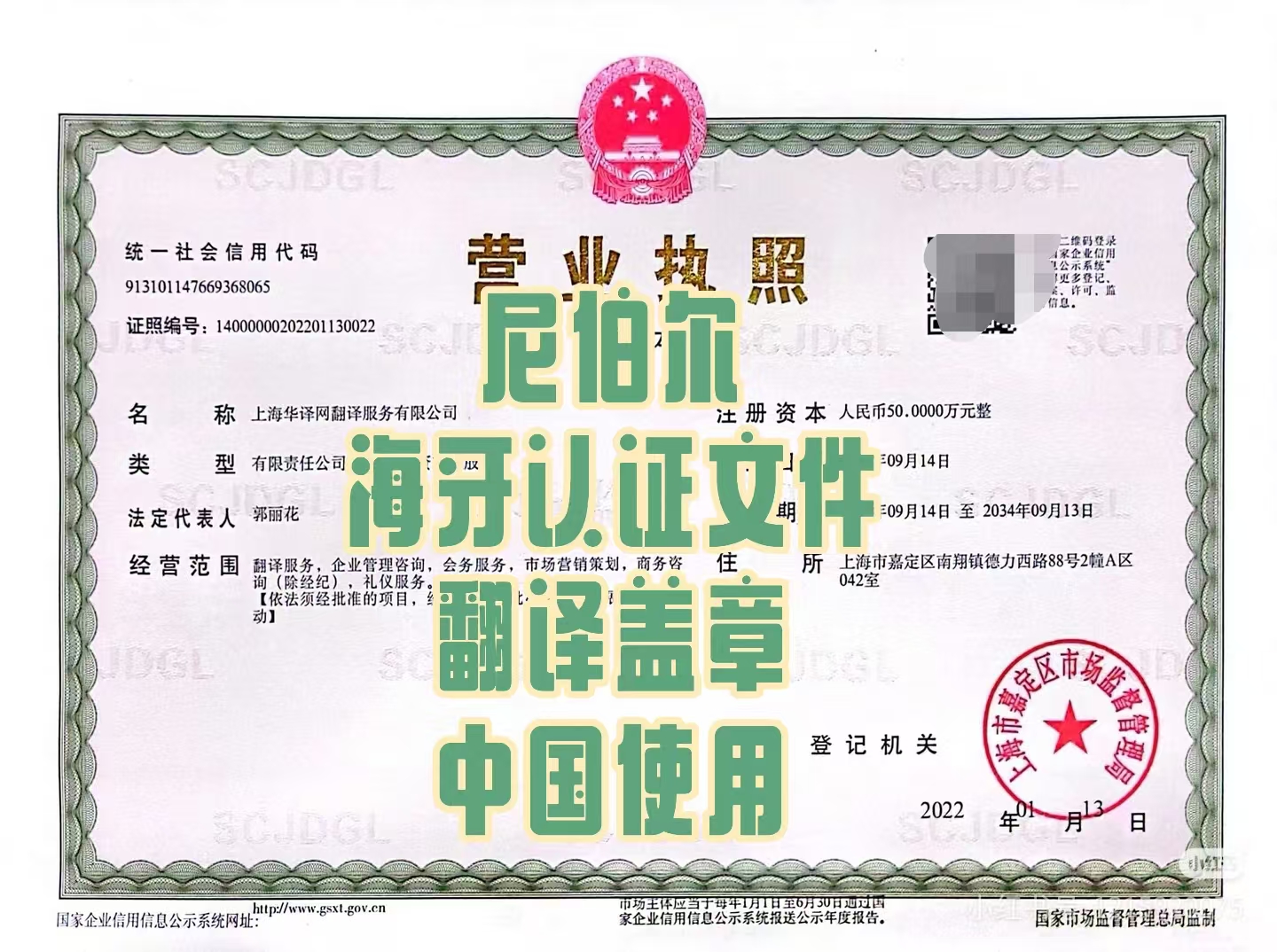 尼伯尔海牙认证文件翻译盖章中国使用