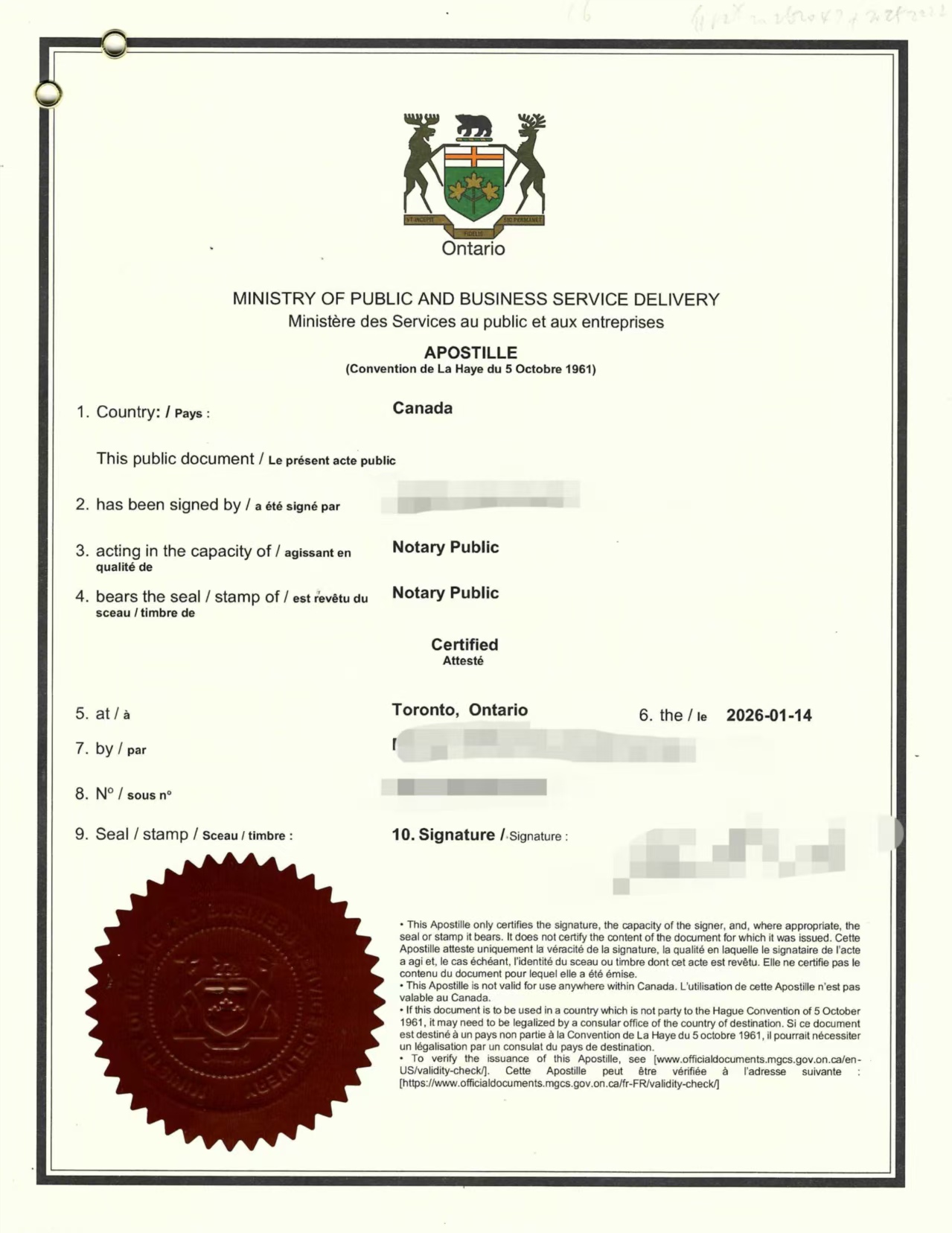 本案客户为我们长期合作的老客户之一,最早于 2025 年年初 委托我们办理加拿大文件的翻译、公证及海牙认证事宜。首次办理的文件为一份加拿大高中毕业证及对应成绩单,文件用于境外教育及相关手续使用。