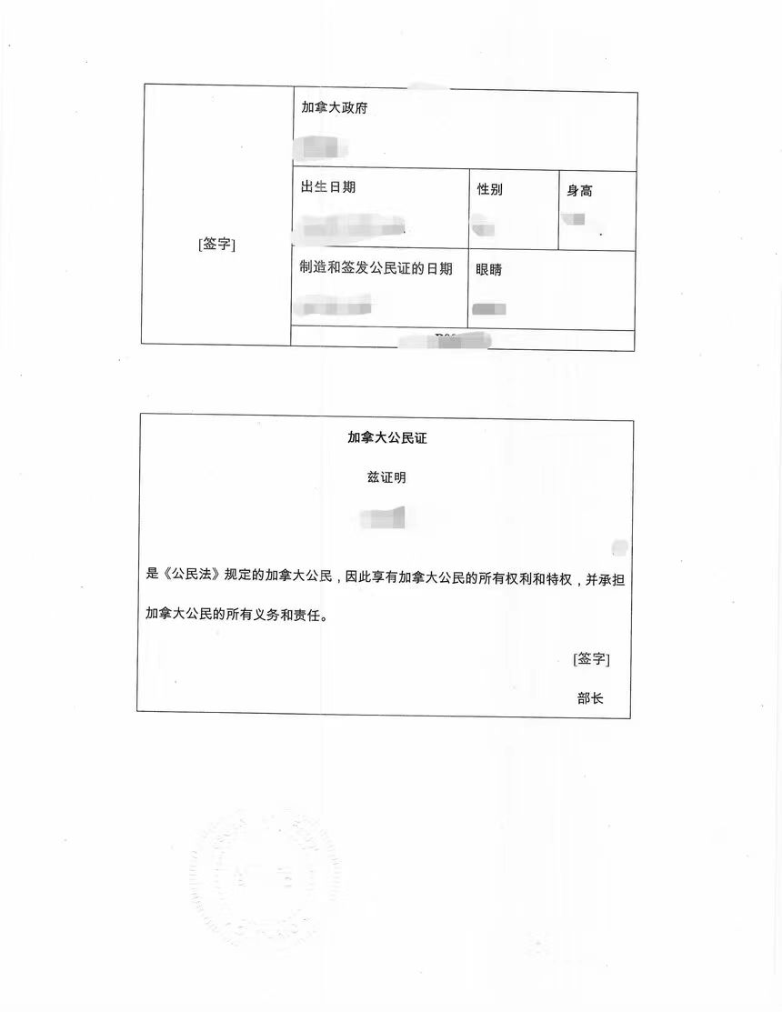 加籍华人中国境内办理资产转移至加拿大,加拿大公民身份证华译网翻译公证海牙认证,当天完成。