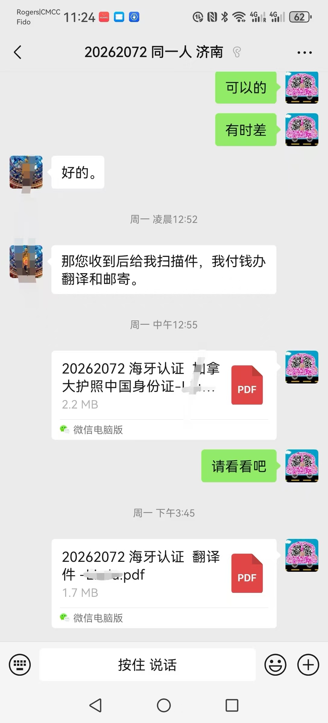 20262072 海牙认证样本 加拿大护照中国身份证- 评价 pdf