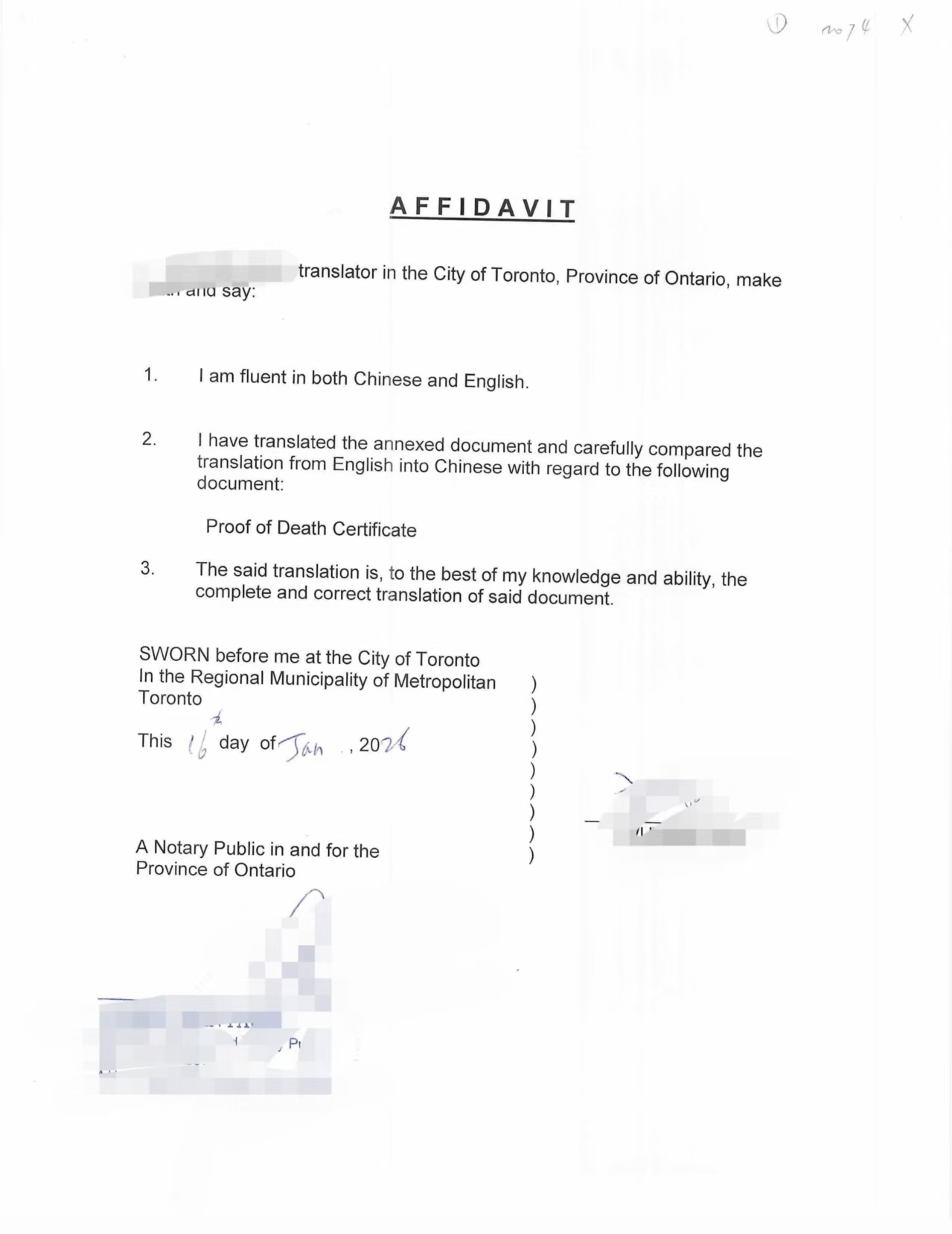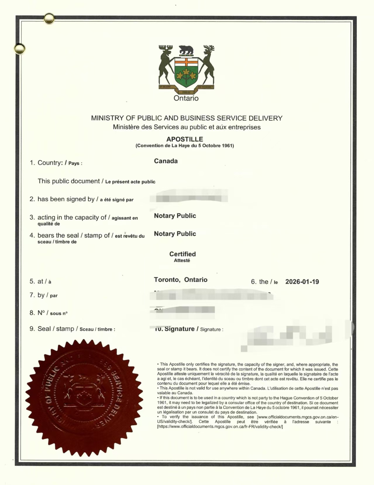 根据我们长期、反复的实务经验总结:安省殡仪馆出具的死亡证明(Proof of Death Certificate),在完成安省执业公证并办理海牙认证(Apostille)后,其对外使用效力,与安省政府签发的正式死亡证(Death Certificate)再办理海牙认证,在绝大多数中国使用场景中是等同的。