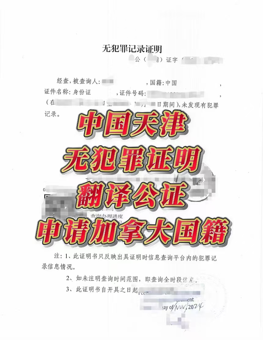 天津无犯罪记录证明翻译公证申请加拿大国籍