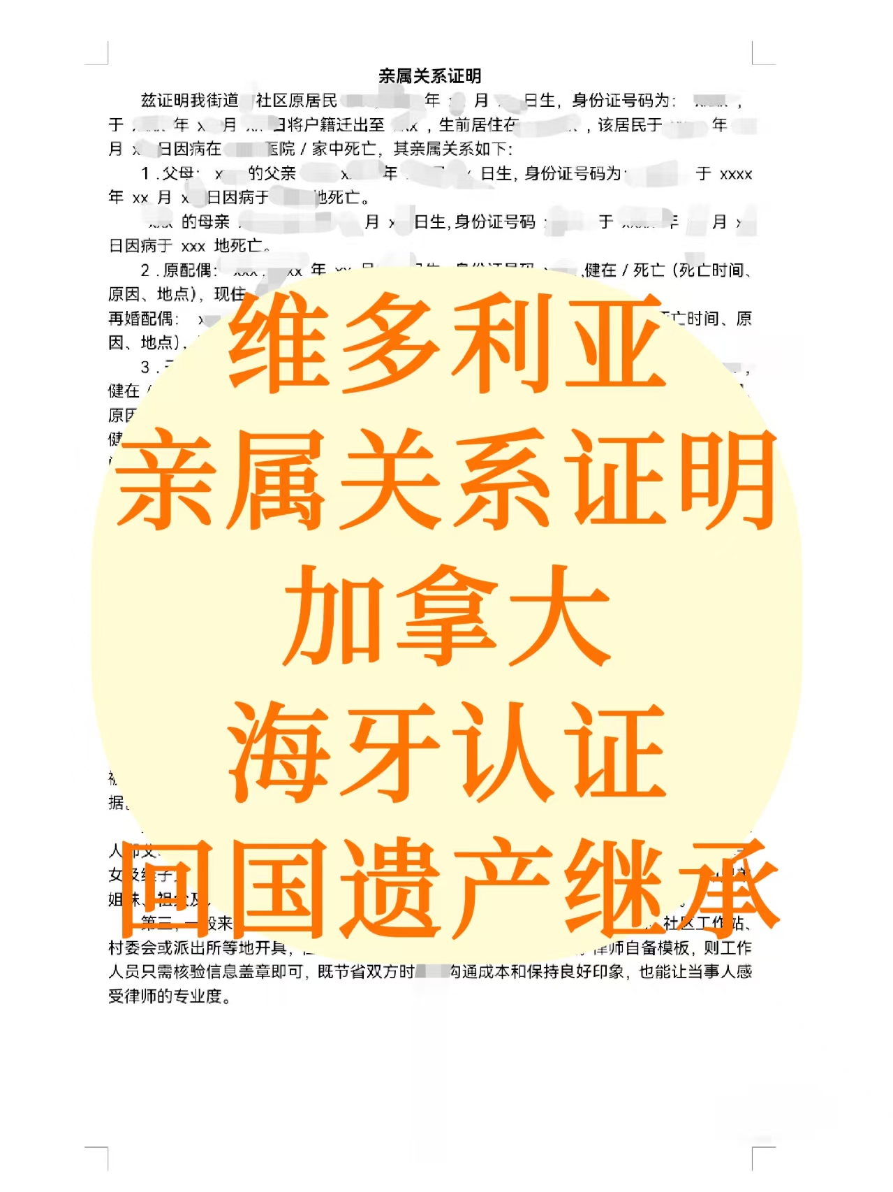 维多利亚亲属关系证明加拿大海牙国继承遗产