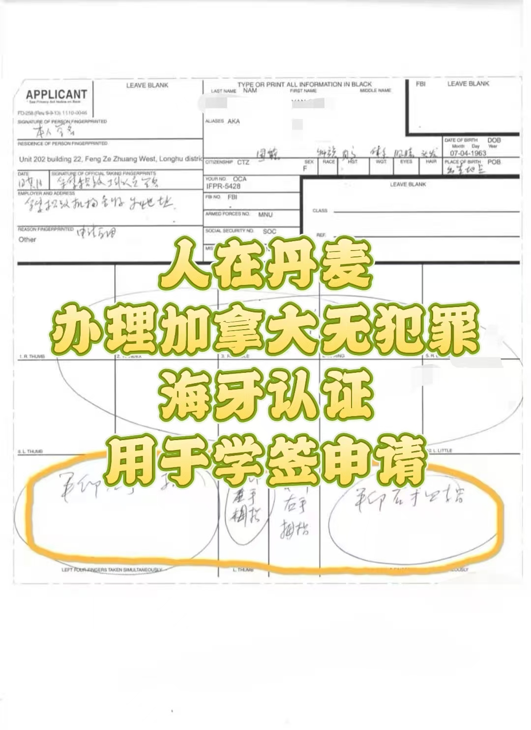 人在丹麦录指纹申请加拿大无罪证明海牙认证
